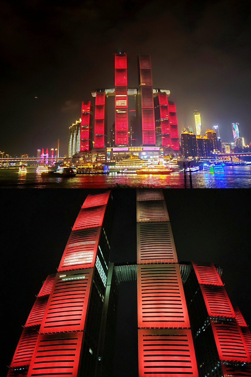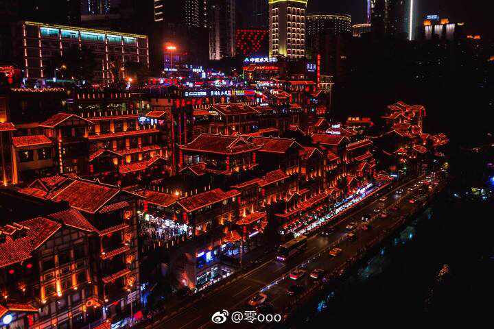 当夜色弥漫,华灯初上,洪崖洞的夜景美的像童话般不现实,确实和「千与千寻」中的汤屋很是相似,更是多了十分人间烟火的韵味~