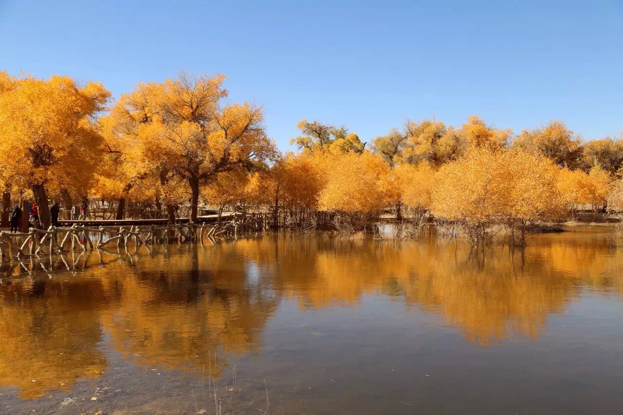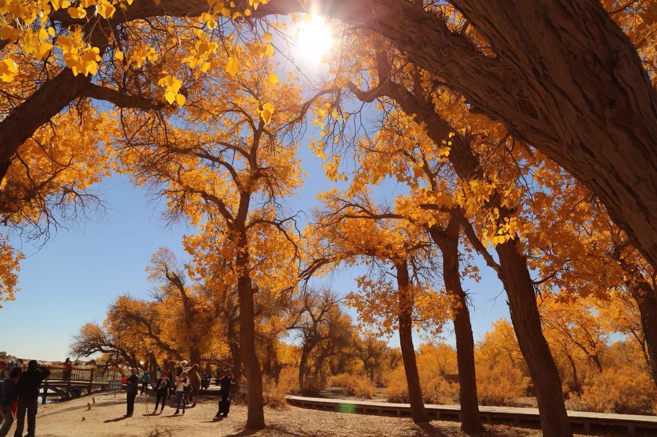 依据以往经验,每年9月10日左右开始有局部黄叶,青黄相映的胡杨林独具特色。在9月20号左右,叶子多数已经变黄。这个时间,已经开始进入胡杨林观赏期。如果天气稳定,黄叶可以持续到10月25日左右。如果寒流频繁,就会提前落叶。当然,胡杨林的叶子究竟什么时候黄,什么时候落叶?确切情况还得老天来安排。国庆相对游客要多些,如果时间允许的话,建议可以选择避开黄金周。