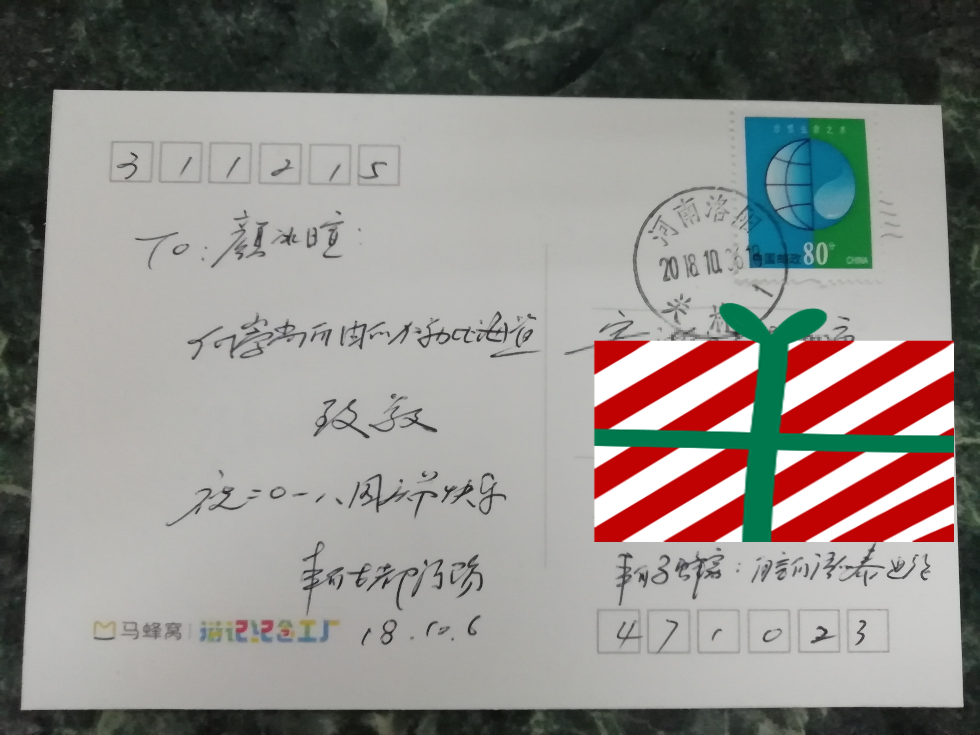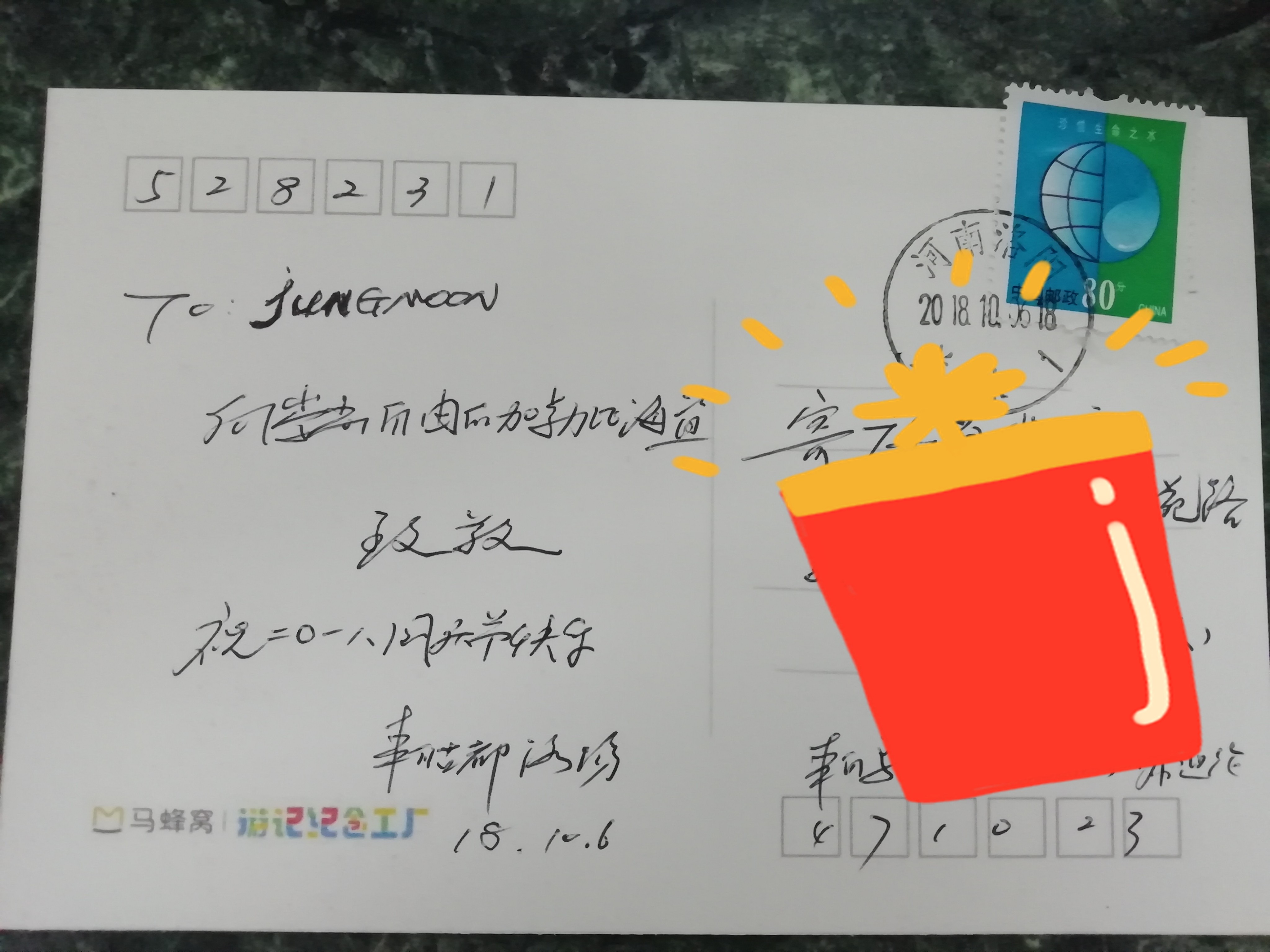 亲爱的蜂蜂,在你把明信片投入邮筒之前,请按照以下指示,拍照晒到这个问题下.在写明信片时,一定要注意这 3 点哟:1. 明信片的开头一定要写明 :TO XX(指路人昵称)并把这部分展示在照片中2.可以晒出明信片的正面和反面, 但千万不要露出收件人的真实姓名、电话、地址等信息(如果你不想让TA提...显示全部