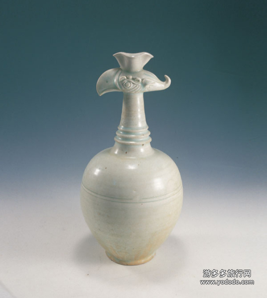 青白釉花口凤首壶胎质洁白细腻,釉色莹润,白中泛青,看起来很像青