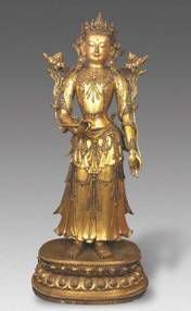 著名的瞿坛寺。该器物身姿婀娜,站立在莲花座上。衣饰线条流畅飘逸,面含微笑,表情慈和,遍体鎏金。其铸造工艺代表了明代的最高技术水平。