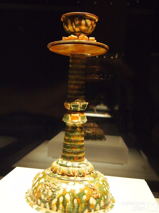 唐三彩灯,唐代。施色独具匠心,整体协调柔和,斑斓绚丽,极为珍贵。