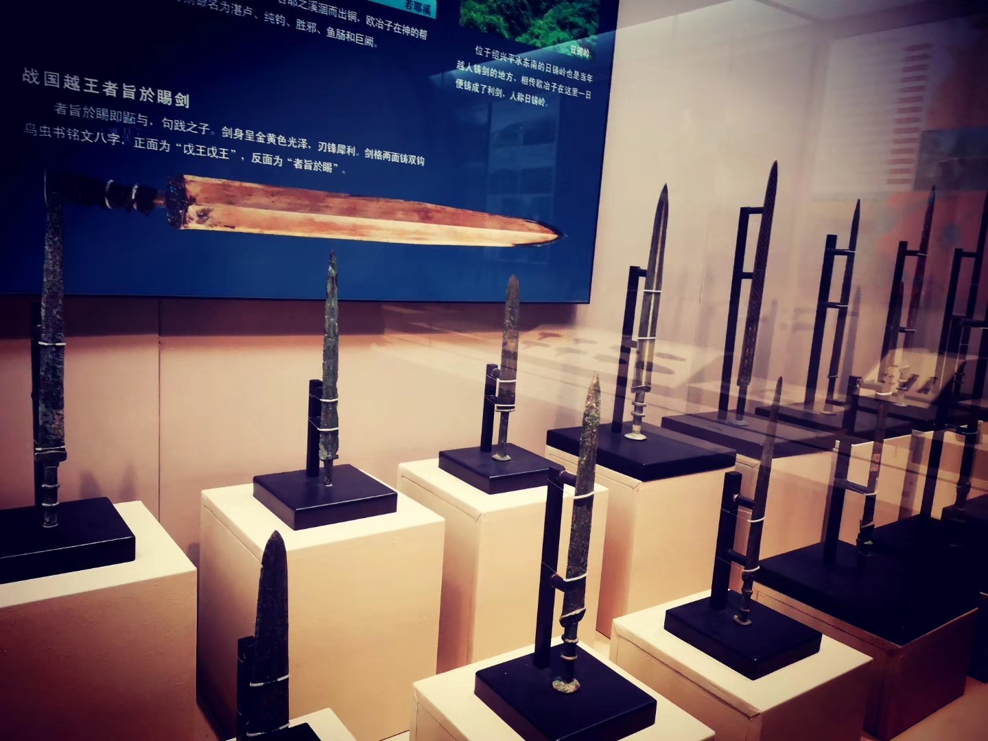 春秋晚期越国青铜器,因剑身上被镀上了一层含铬的金属而千年不锈。刻有“钺王鸠浅,自乍用鐱”八字。此剑寒气逼人、锋利无比,历经两千四百余年,仍然纹饰清晰精美,加之“物以人名”,历史文化价值很高,此剑被当世之人誉为“天下第一剑”,堪称我国国宝。