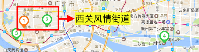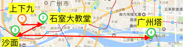 塔出发,路线为圣心大教堂——沙面岛——上下九