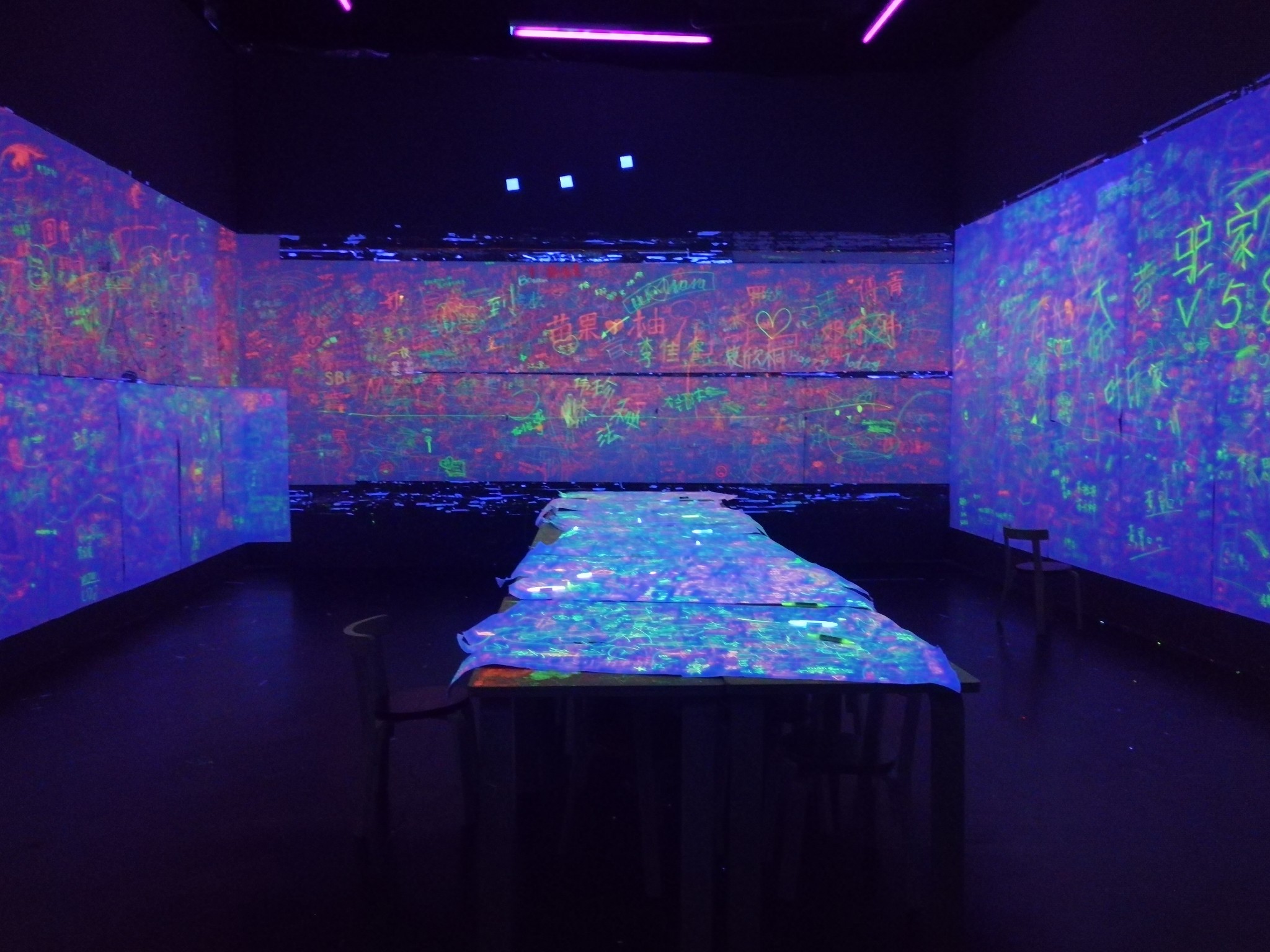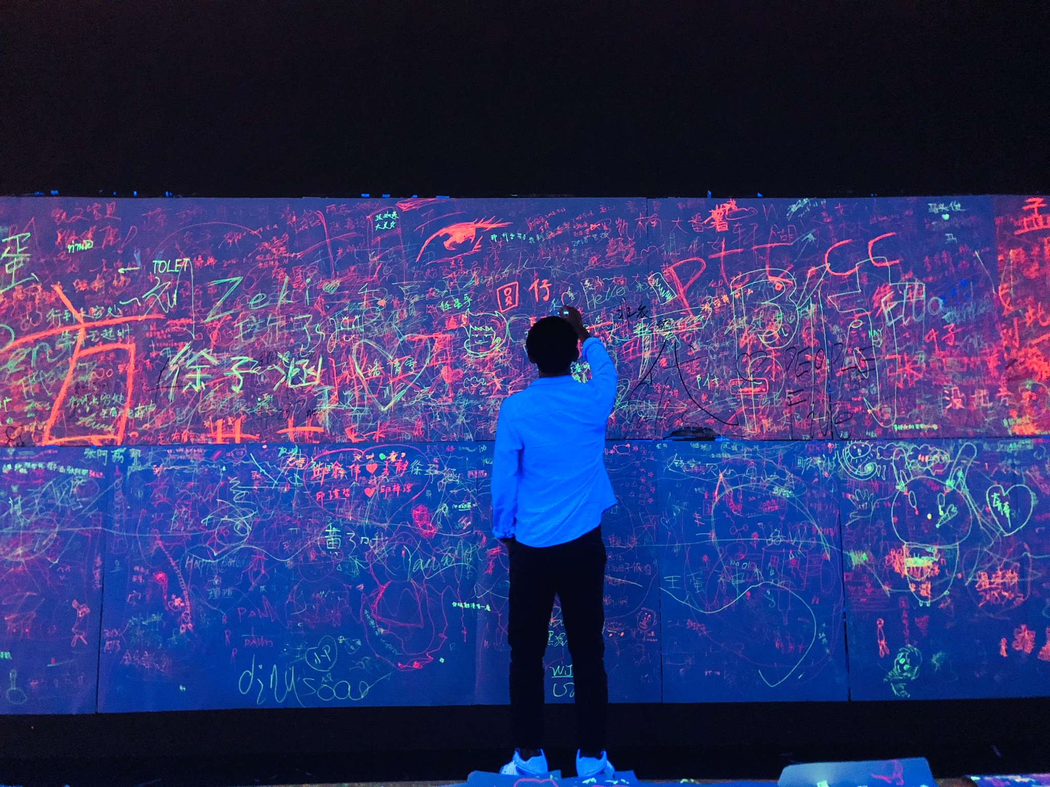花城汇MAG环球魔幻世界 荧光的签名墙,看到粉丝对偶像各种打call