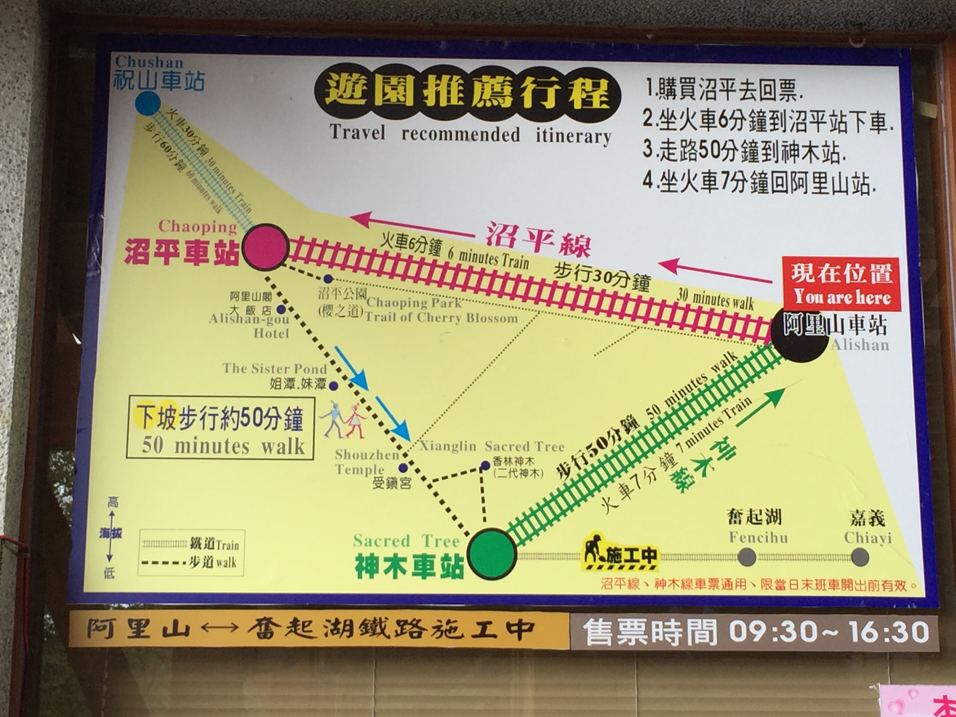 这阿里山的小火车的确容易迷糊,原来是小日本侵占台湾时为了运走台湾的神木而修造的,从海拔高的地方一直到嘉义,再汽车运到港口,船舶拉回日本修庙宇,真是可恶。不过现在和平年代了,小火车就失去其作用了,我们上次去时中间一段不通车了,只有前面一小段,和山顶的阿里山森林游乐区里还在运输游人。某某线就是目的地去某某地的铁路的意思。大部分游人都是坐车开车到阿里山森林游乐区,买票进去景区后,到阿里山车站再买小火车票去不同的方向,比如沼平、神木或祝山。目的地不同,路上景致不同。当然了,期望值不要太大,阿里山没我们想象得那么好看,小火车也没那么浪漫,我个人觉得就是到此一游的赶脚,阿里山也就是在台湾岛,挪内地来可比不了我们大好河山。