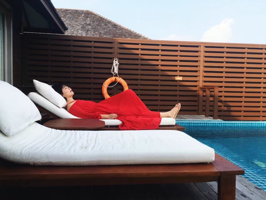 【房间】神仙珊瑚的房型很多,因为要浮潜的缘故,当然首选还是水屋,听闻沙滩房的蚊子很多,还有壁虎,想想选择住在水屋哪怕费用贵点也是值了。这次出行的费用除了直飞的机票就是水屋最贵了,岛上的房型700--1000美金一晚不等,但是住过水屋的我还是最钟情于这里,看到老婆和儿子喜出望外的惊讶表情就已经知道了,大家是爱上这里了。儿子躺在泳池的躺椅上对我说:“爸爸,这就是我要的生活啊!”