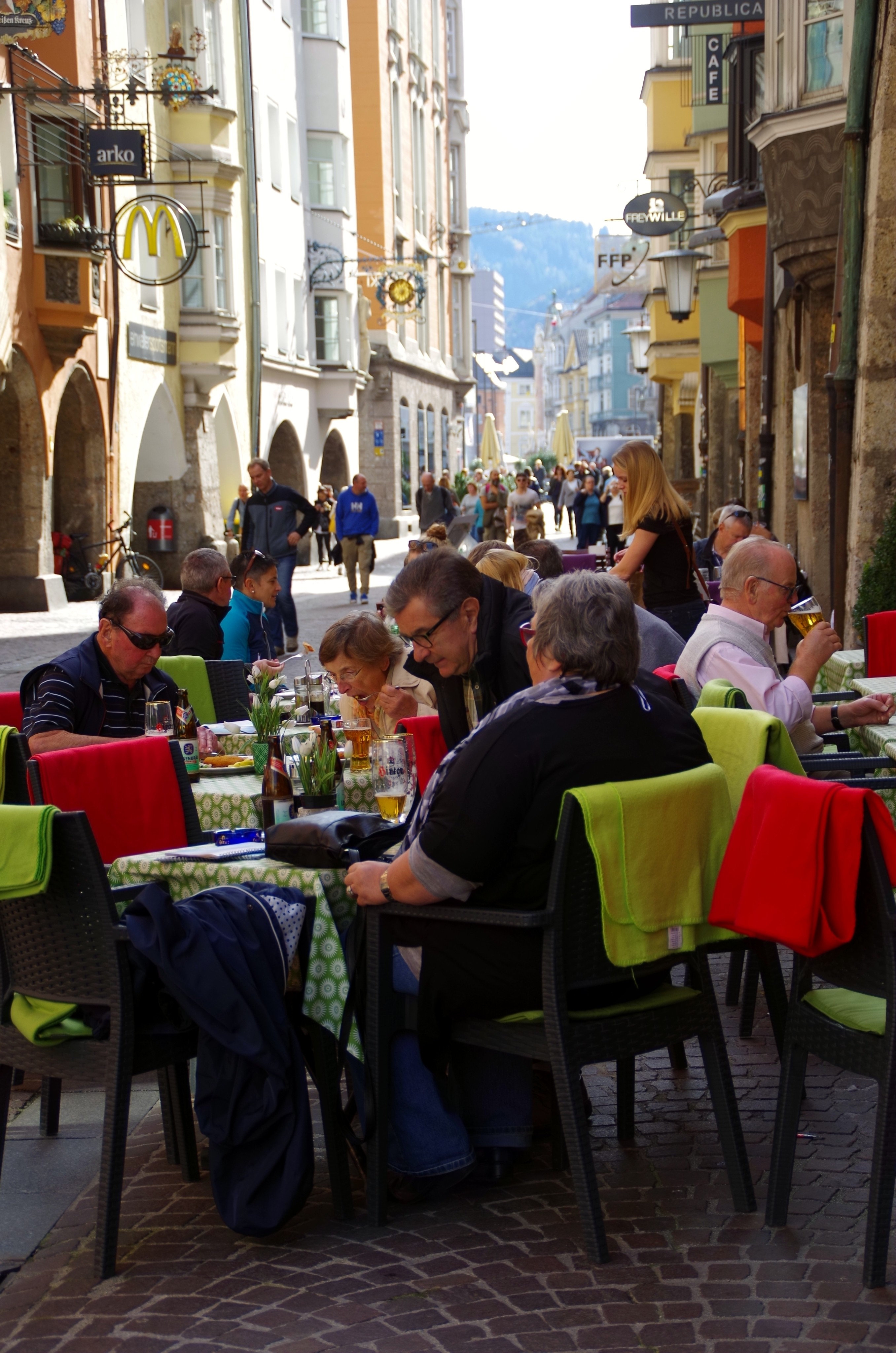 因斯布鲁克——因斯布鲁克这座美丽的小城坐落在阿尔卑斯山谷之中,旁边流淌着因河。奥地利的高山,就跟她的音乐一样,是世界知名的。小城仍然保持着中世纪城市的容貌,古建筑和阿尔卑斯山雪峰交相辉映。“手一抖都能把照片抖出岁月感的城市一定是艺术的。”说的就是这座城市吧。无论是在因斯布鲁克的哪一个角落,都能见到白雪覆盖的山峦。冬天的因斯布鲁克更是滑雪度假的胜地,曾举办过两届冬奥会。