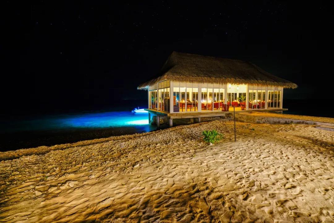 餐厅内部以沙滩铺地,时时刻刻让人有海滩度假的感觉,露天的海景更是强烈的吸引着人们享受在外进餐的惬意,烛光、海滩、多姿多彩的珊瑚和游鱼,还有家人朋友,梦幻般的场景拥你入怀,不可遗忘的昨日都被 印度 洋的海风吹拂殆尽,彩霞如火般炫丽多姿,也尽情的徜徉在这如梦似幻的岛屿上,咫尺之迩,仿佛稍一触碰就牵出丝滑般的流畅痕迹,自己也摇曳一变,好似小仙女变身,正张开双翼与那挂在东方的明月来一场邂逅……