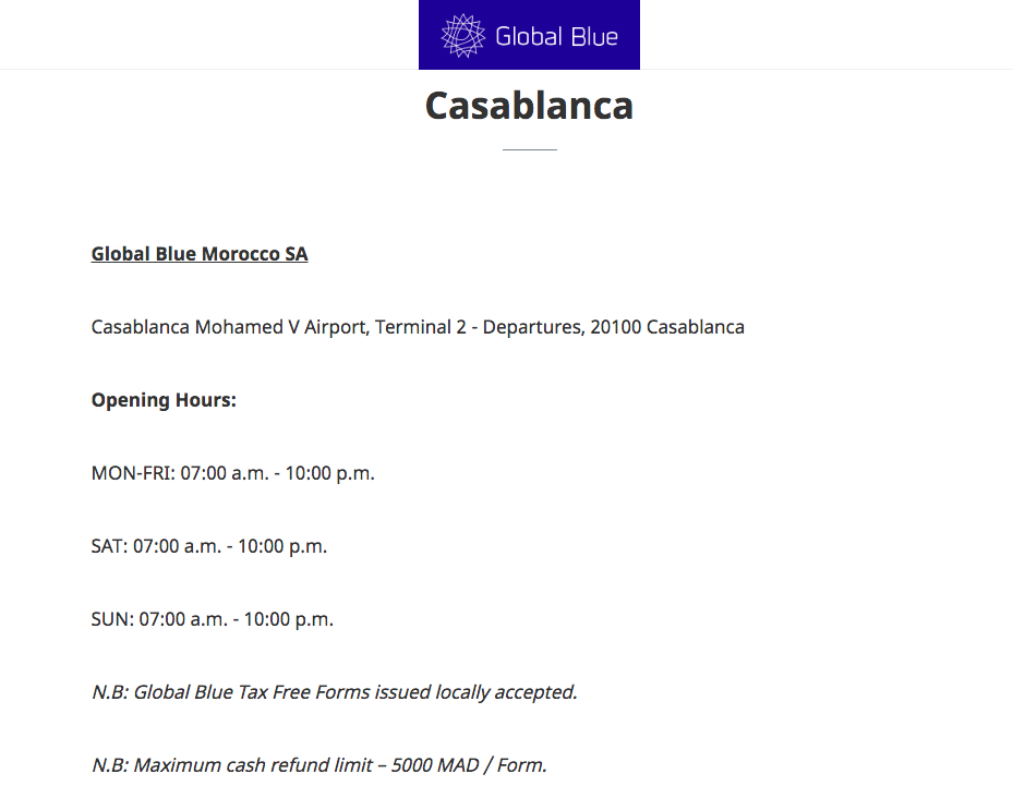 1、理论上说,以官方公布上班时间,早上7点就开工了。Global Blue Morocco SACasablanca Mohamed V Airport, Terminal 2 - Departures, 20100 CasablancaOpening Hours:MON-FRI: 07:00...显示全部