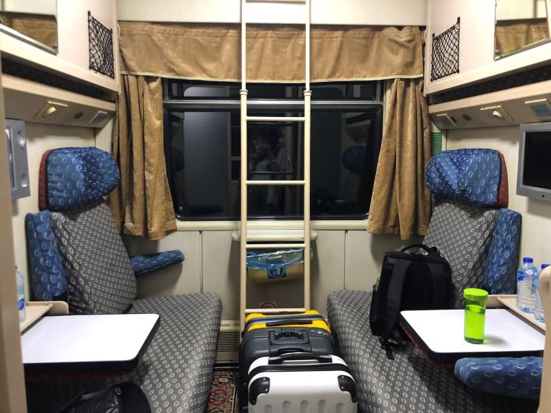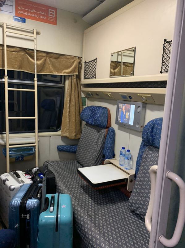 德黑兰-设拉子夜火车传说中值得体验的伊朗夜火车名副其实,设计相当科学人性化,必须狠狠夸夸。卧铺是四人一间,对面双层式设计。上铺可折叠,不睡觉时,折叠起来房间更显敞亮。下层也可收缩,平时当座椅,靠背、扶手、小桌子,齐活。睡觉时,小桌子收起、扶手竖立、座位迁移,一张单人床妥妥的。行李箱可放于座...显示全部