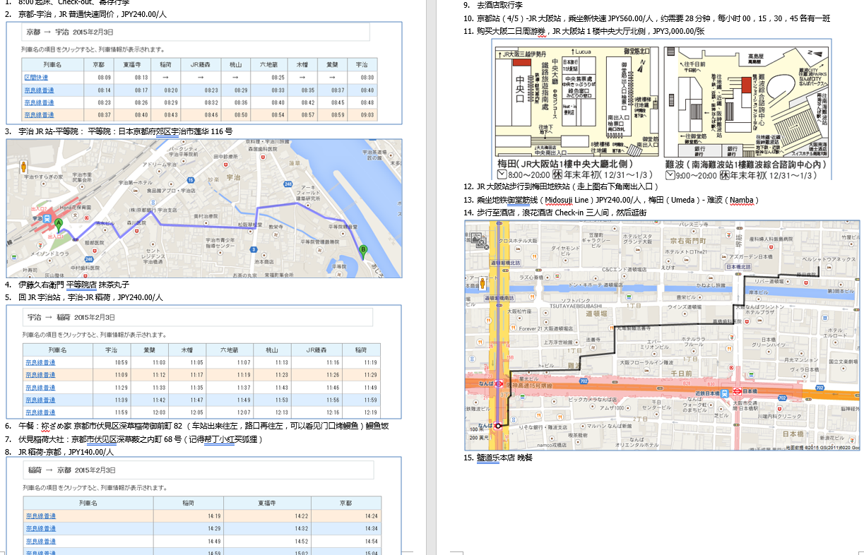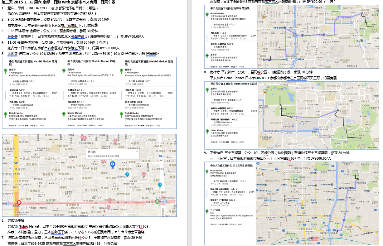 这是去日本关西,在京都的某天的安排中的一部分,有公车的乘坐规划,有下车后的步行,有行程的安排。