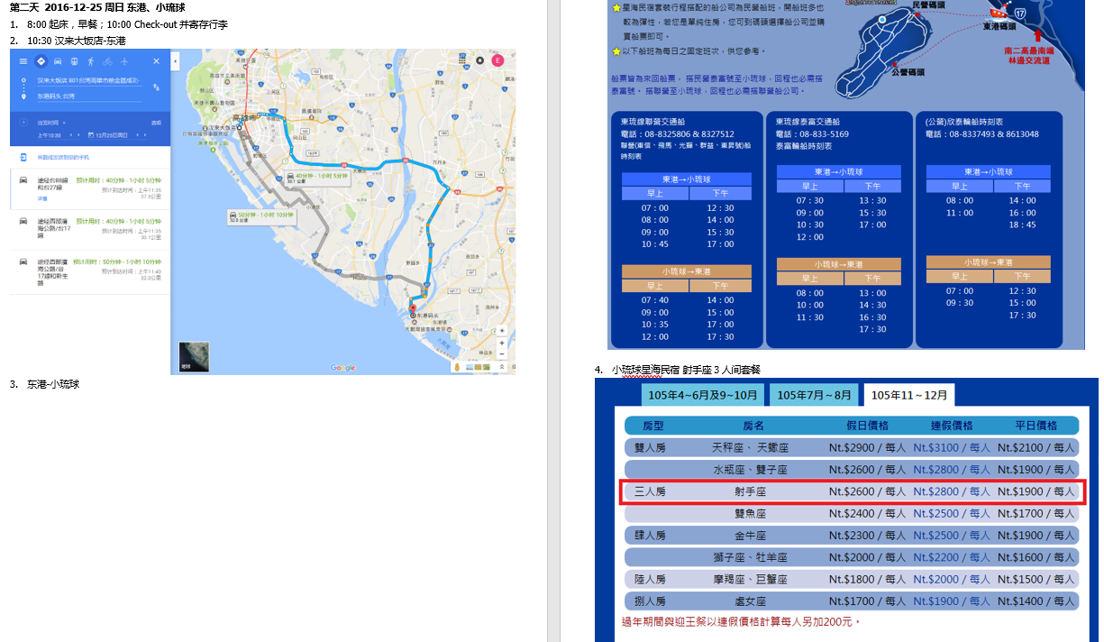 这是去小琉球做的攻略中的一部分,把民宿的信息放在了攻略中。