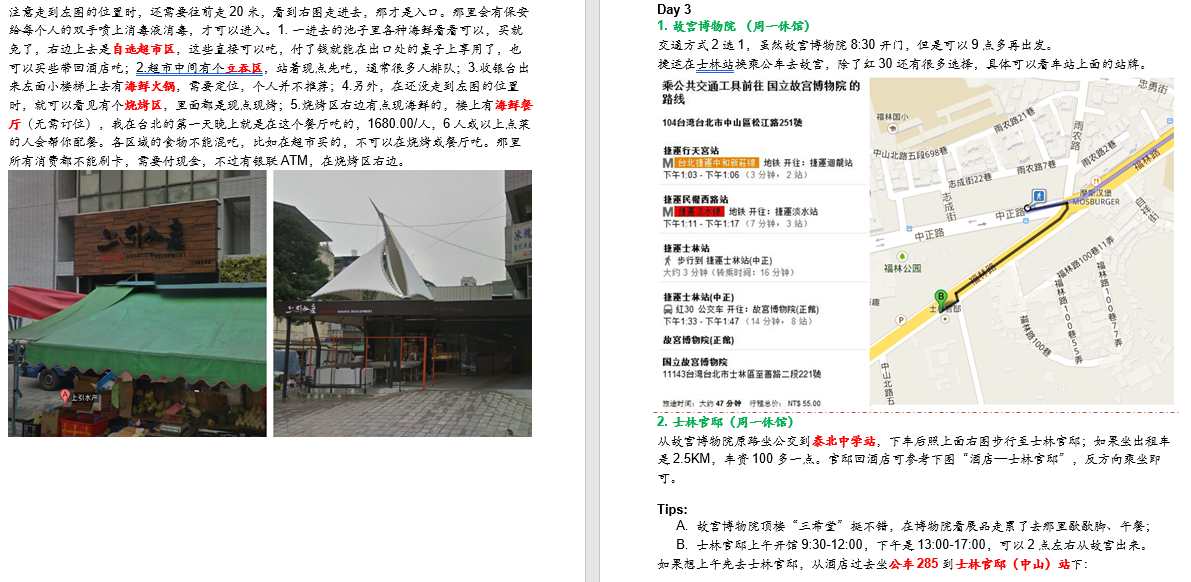 有特别要好的朋友去台北玩,请我给一个攻略,我就做了一个带有介绍的攻略给她,除了路线,还说明了地点的休馆情况,或者告知最方便的途径等等。(我真是一个热心人)