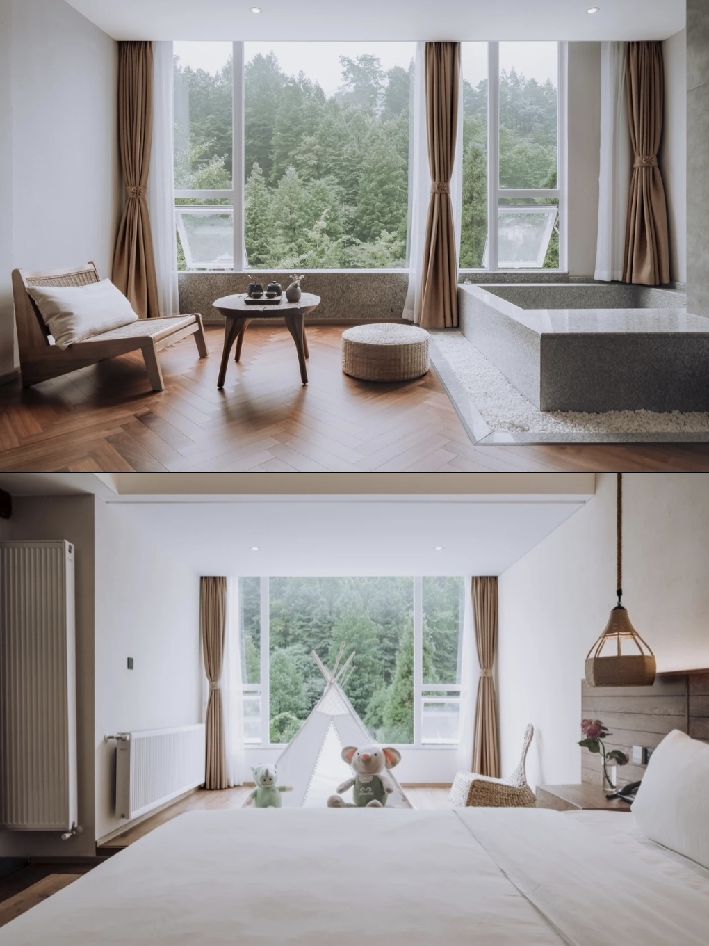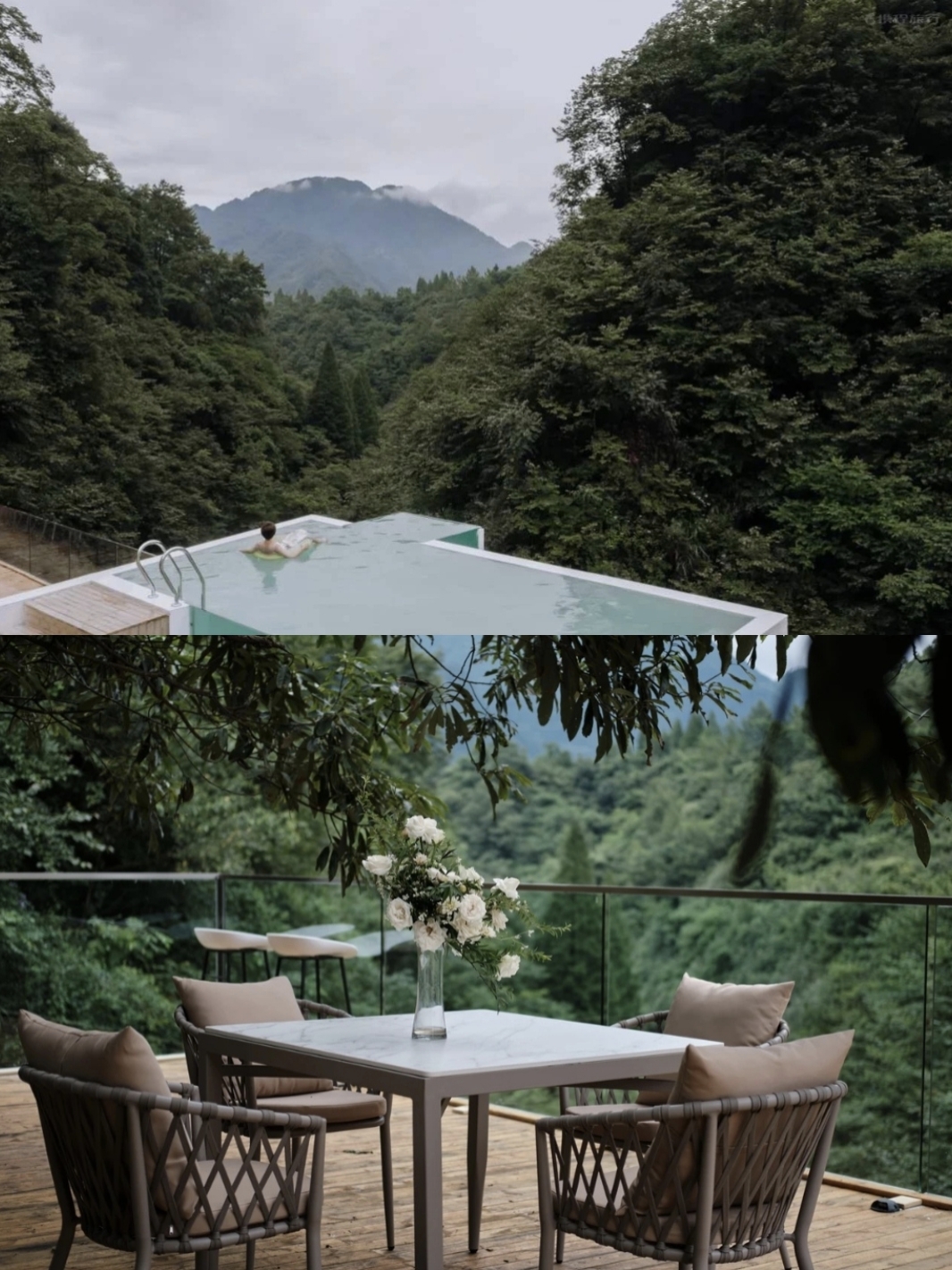 如果你喜欢清净喜欢大自然走进森林深处,隐居山中窥视到天地万物和自己的内心。建议你到青城后山穿过泰安古镇,往森林深处,整个视野里只有白色和绿色这两个颜色。白色是一宿,绿色是青山,再无半分其余颜色,素净又清爽。院子很安静,溪流水声和着鸟鸣,每一呼吸都是大自然的气息。公区有无边恒温泳池和360°超大...显示全部