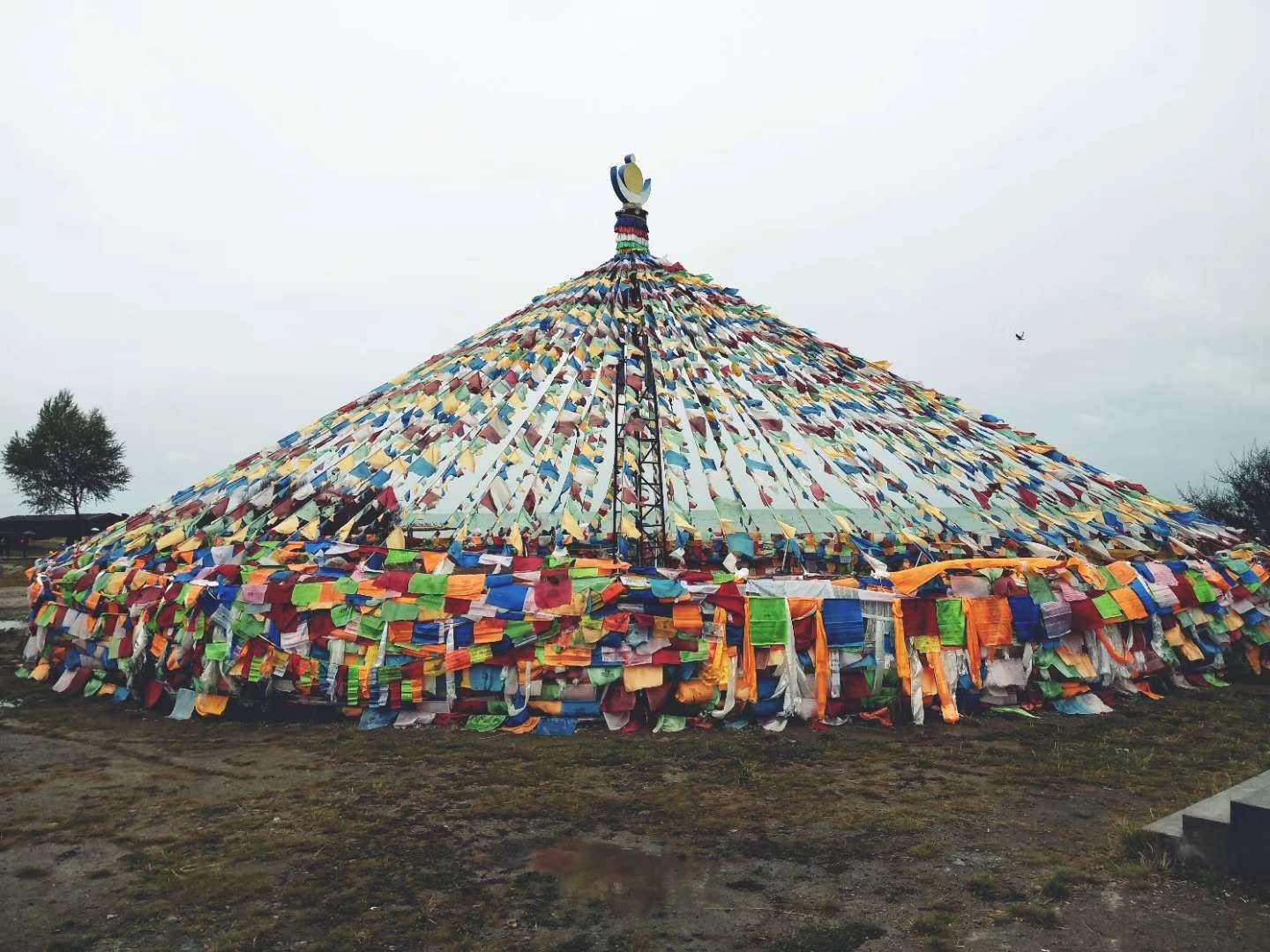 若尔盖热尔大草原垭口的风超级大,感觉像是在风机的引擎下面,瘦小的我几乎要被吹到飞起来,坐在垭口的经幡下面不由的想起了高晓松的一句话“世界不是苟且,世界是远方,行万里路,才能回到内心深处”。