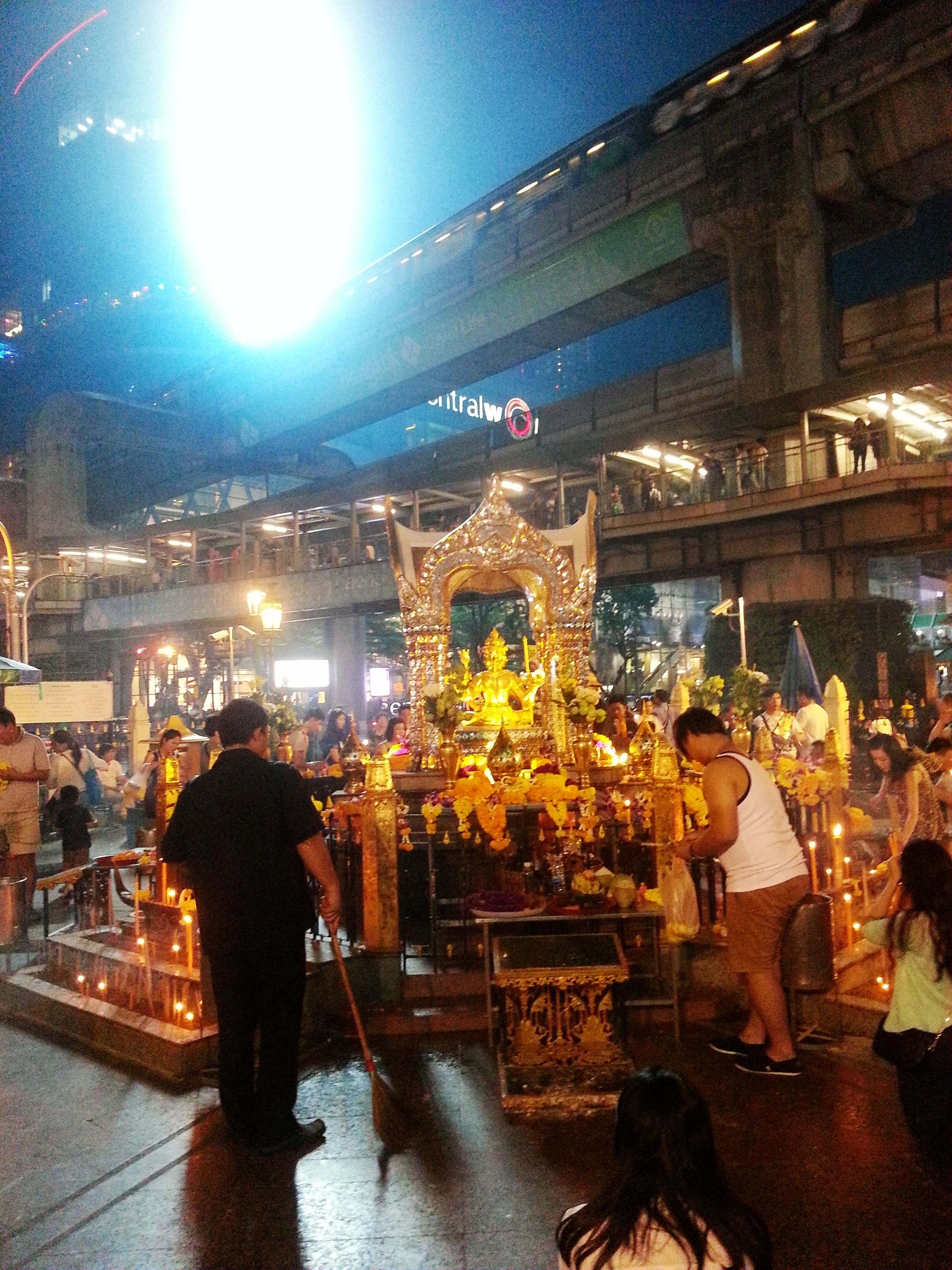 没有必要报团,非常简单的,四面佛就在市中心,去逛街的时候就一起顺路拜一下就可以了。 乘坐BTS到E1-chitlom站下车,出站走一会就到四面佛,参拜完四面佛,就走到旁边的Central world Plaza,这里是 曼谷 市中心大型的购物商场,周围是一个很大购物的商圈,如果买名...显示全部