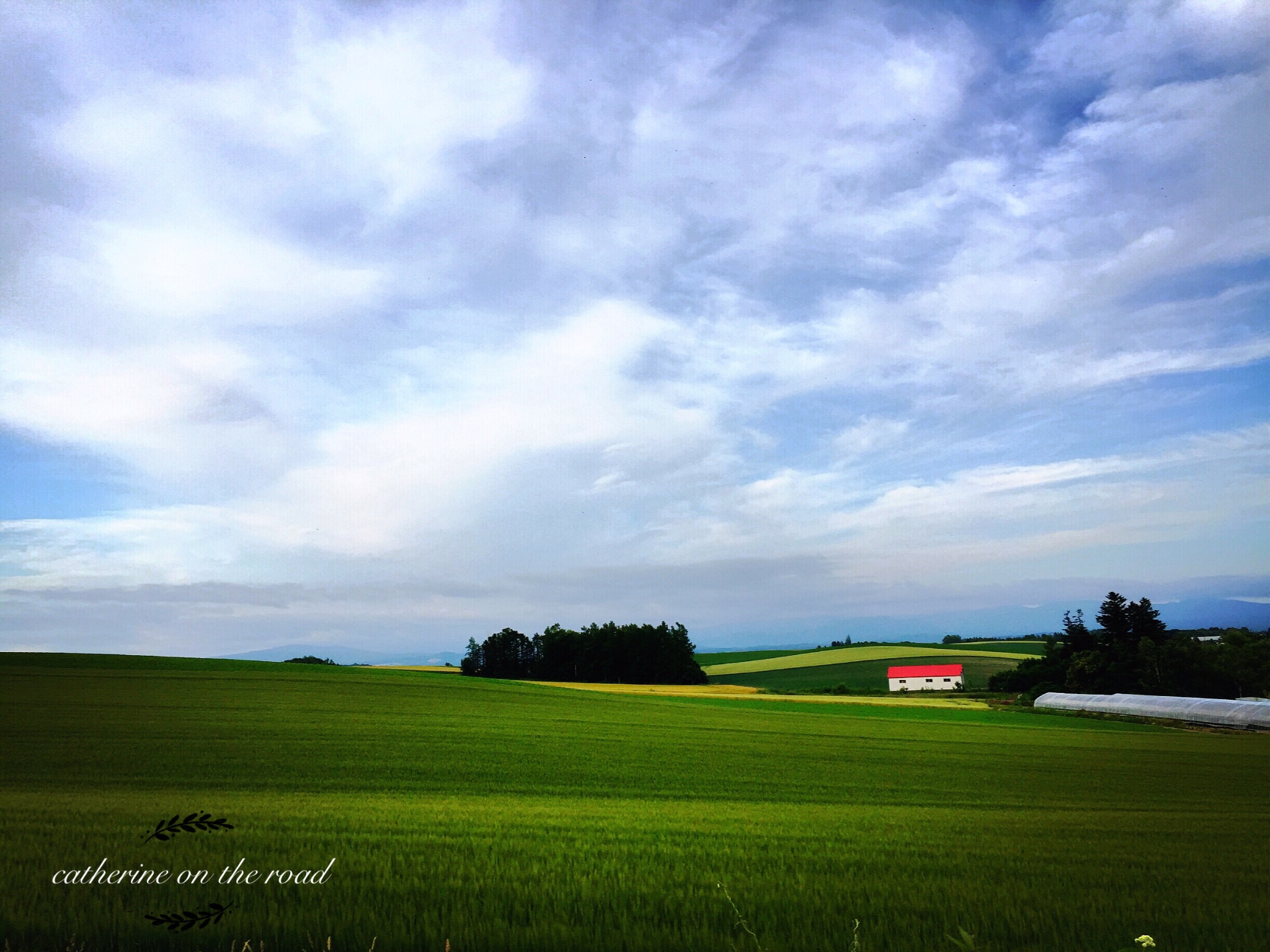海岸线开往知床半岛的路上,天气开始慢慢放晴, 北海道的东部基本没有高速公路,大部分是乡间的小路,所以车速不能太快,但是好在车少,驾驶礼仪很好,最重要的是两边是看不厌的风景,满眼绿意,穿过田野山间,我们一路冲到了海边,下午五六点的光线是最自然最柔和的,既不刺眼也不黯淡。