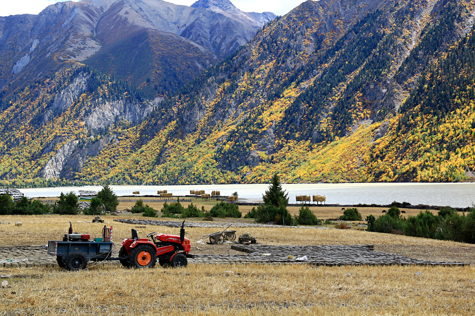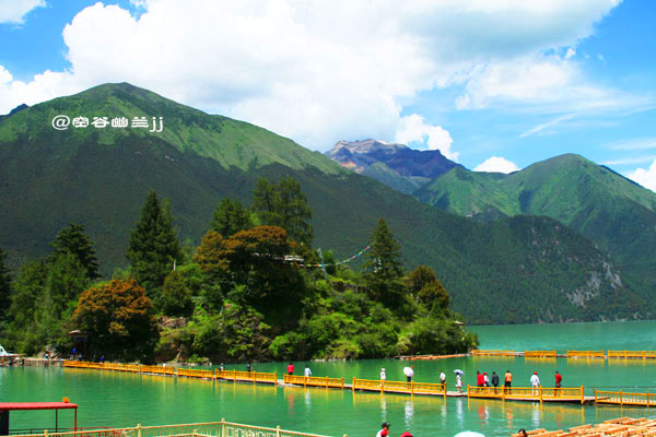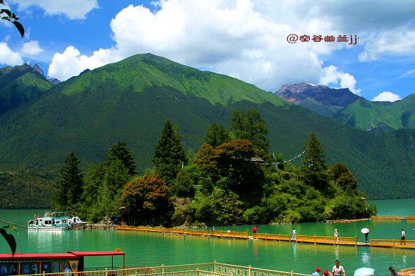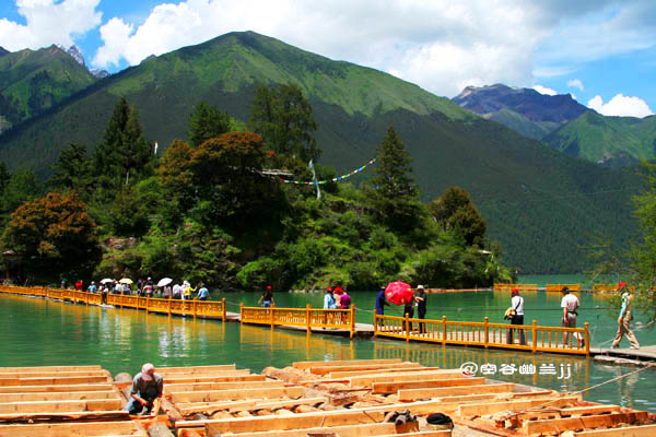 原来我们闯进了巴松措又名错高湖,“错高”在藏语中意为绿色的水,湖面海拔3700多米。湖形状如镶嵌在高峡深谷中的一轮新月,长约12公里,湖宽几百至数千米不等。 最深处66多米。总面积25.9平方公里。巴松措位于距林芝地区工布江达县50多千米的巴河上游的高峡深谷里,是红教(藏传佛教宁玛派)的一处著名神湖和圣地。虽然巴松错深藏在交通闭塞、远离城镇的山沟里,但它却以其林木繁茂和群山耸立中的那一池碧水而广为外界所知,成为林芝地区最早为人所知的风景区之一。
