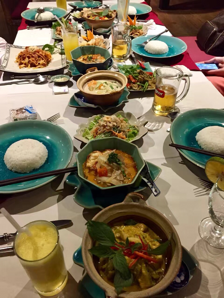 更有意思的是这里离长江边不远,吃饱喝足,我还可以去江边散散步,看看江边风景,和好友继续谈笑风生,是不是很惬意? 逛完再去来一份美食~泰皇泰厚,那咖喱味真是喜欢到爆~ 问了咖喱大虾和泰妃虾有啥区别,说是咖喱大虾品质更好,泰妃则类似于基围虾,结果还上错了菜,口味觉得咖喱配料还不错,不过25一只的虾子,个头不大,就不知道凭啥这么贵。。配上面包吃。还行,牛腩和西米糕确实不错。。。总体三颗星吧,性价比不高,可能也就所谓的环境好吧~~