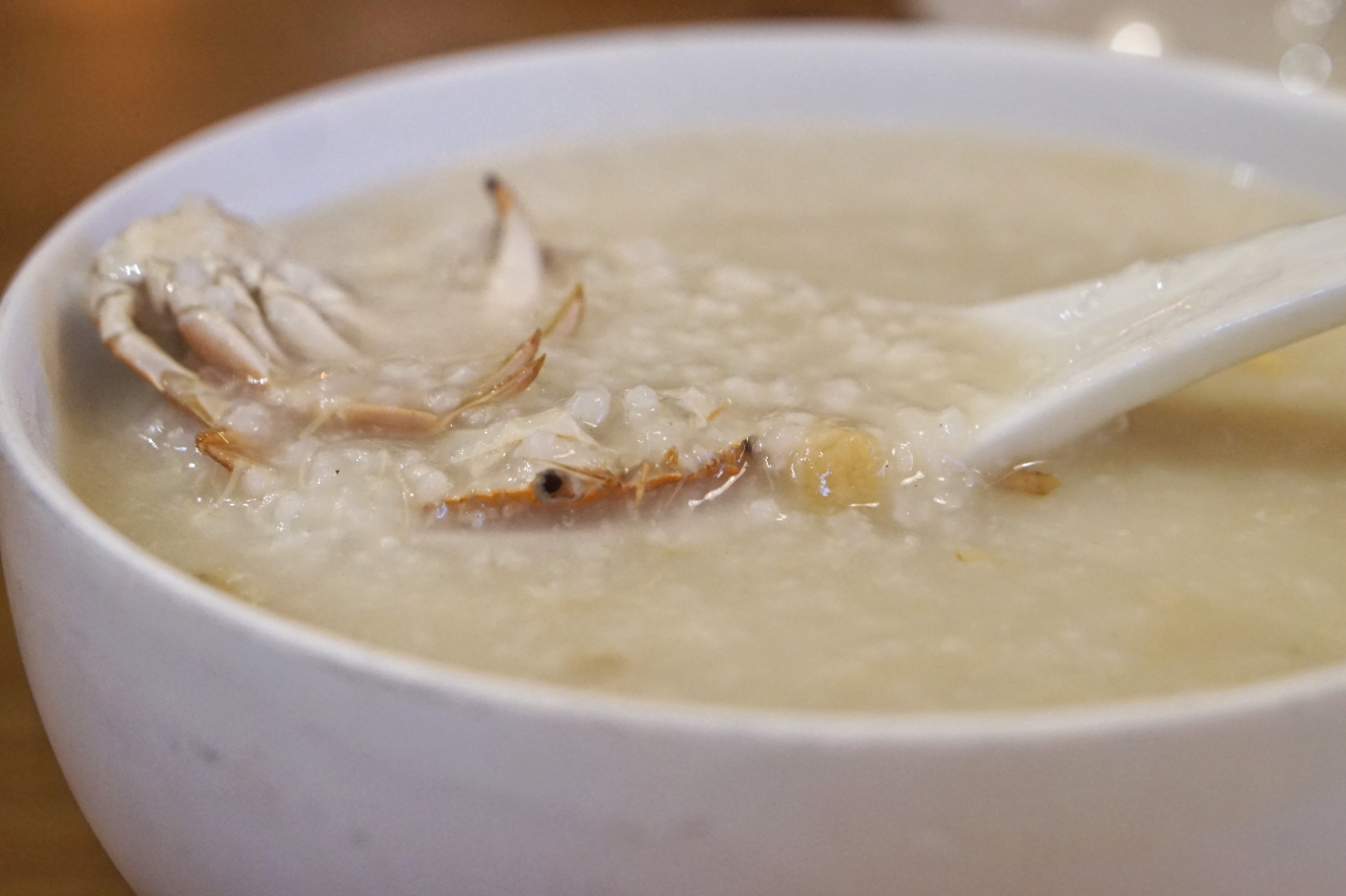 强烈推荐他家的野生蟹炖粥,每一粒米都晶莹透亮,吸饱了螃蟹的汁水与膏体的甜香,每一勺入口能爽滑甜鲜,吃着是米,尝着像蟹。