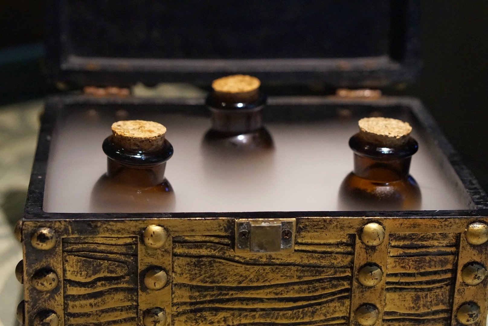 宝箱是送的,里面1瓶毒药,2瓶解药,全靠运气了。
