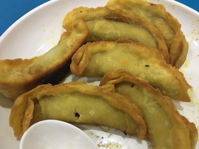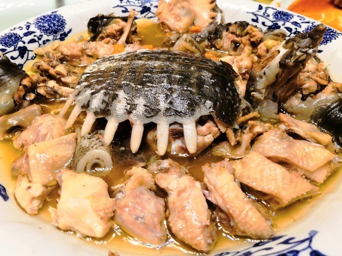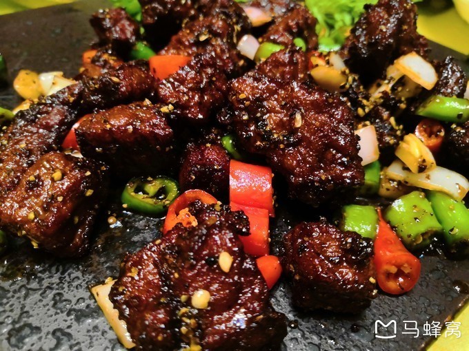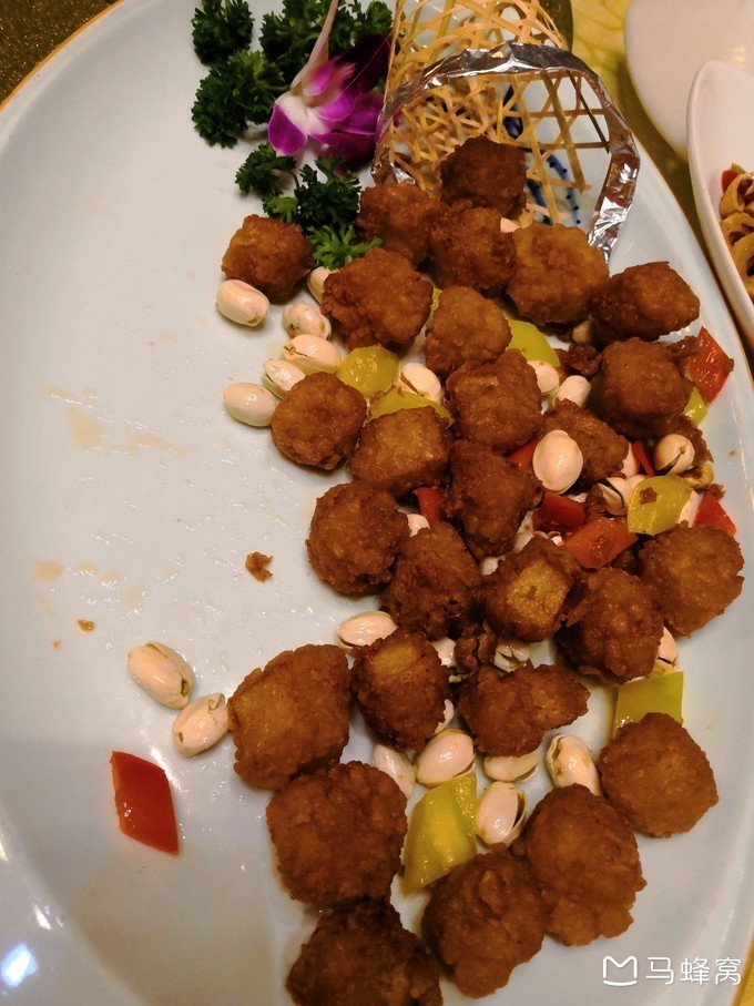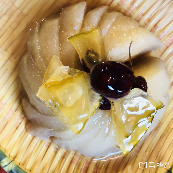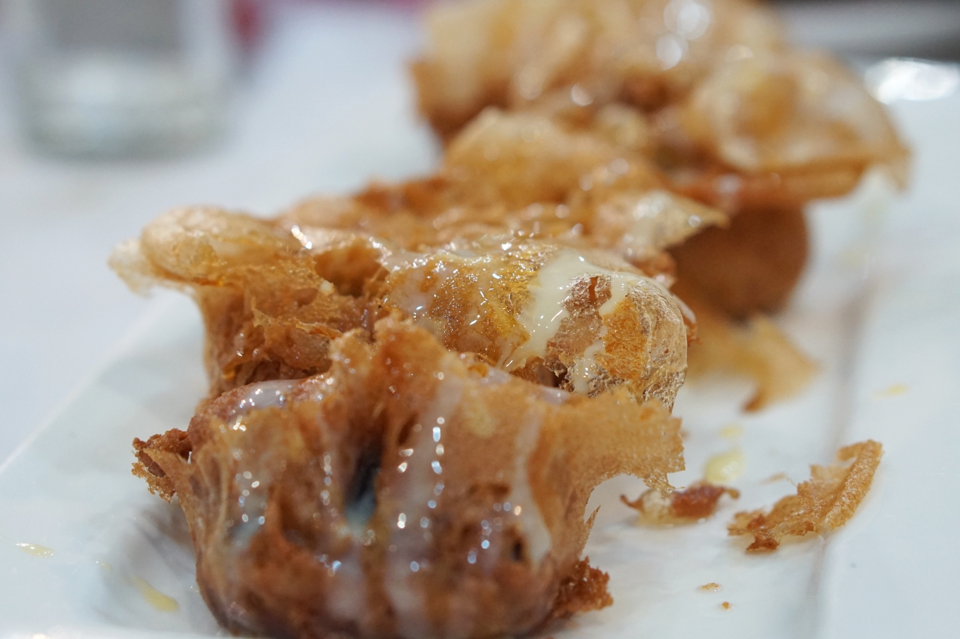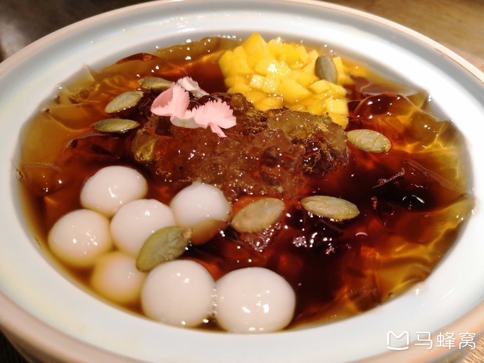 煎炸龟苓膏,我其实本来不喜欢龟苓膏,可是这盘龟苓膏的造型实在太抢眼,像极了炸馄饨又像舞女们旋动纱裙。外面的纱衣十分酥脆又有些淡淡的甜意,里面的龟苓膏不像我之前吃过的那样苦涩,反而滑嫩Q弹,十分爽口。就是加上外套有点儿油,吃多了不行。