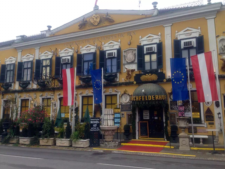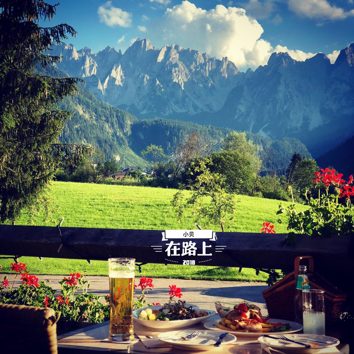 4.奥地利戈绍的霍夫酒店餐厅推荐理由:看着远处的阿尔卑斯山,一切是那么安静,仿佛天堂就在隔壁。那时那景:与世隔绝享用了一顿最美晚餐。上图: