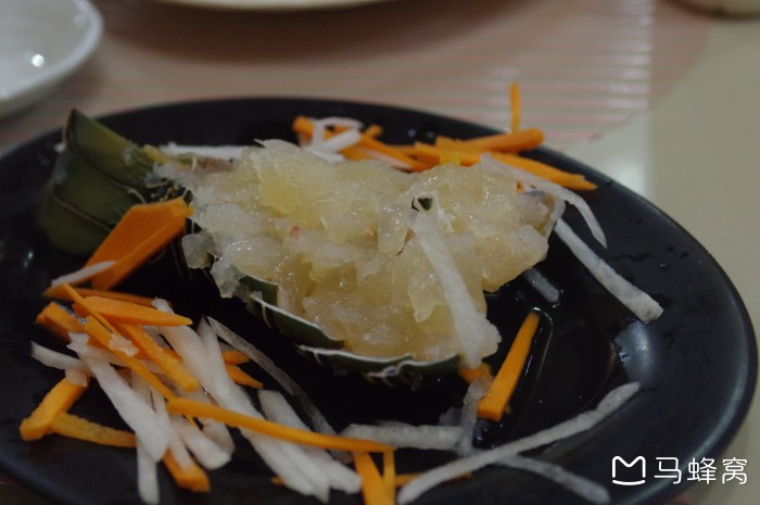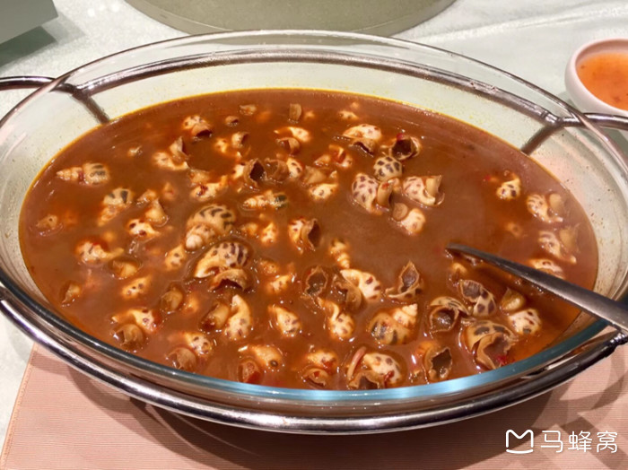 他家的特色菜最推荐的是豉汁黄沙砚,很大的一盘,端上来很壮观,里面密密地都是张着口的小黄沙砚,红辣椒和绿香菜点缀其中,浓香勾起食欲。调制的汁水香浓有滋味,以至于黄沙砚虽然小,吃起来麻烦,那好滋味的口感却逼着你一个接一个吃下去。