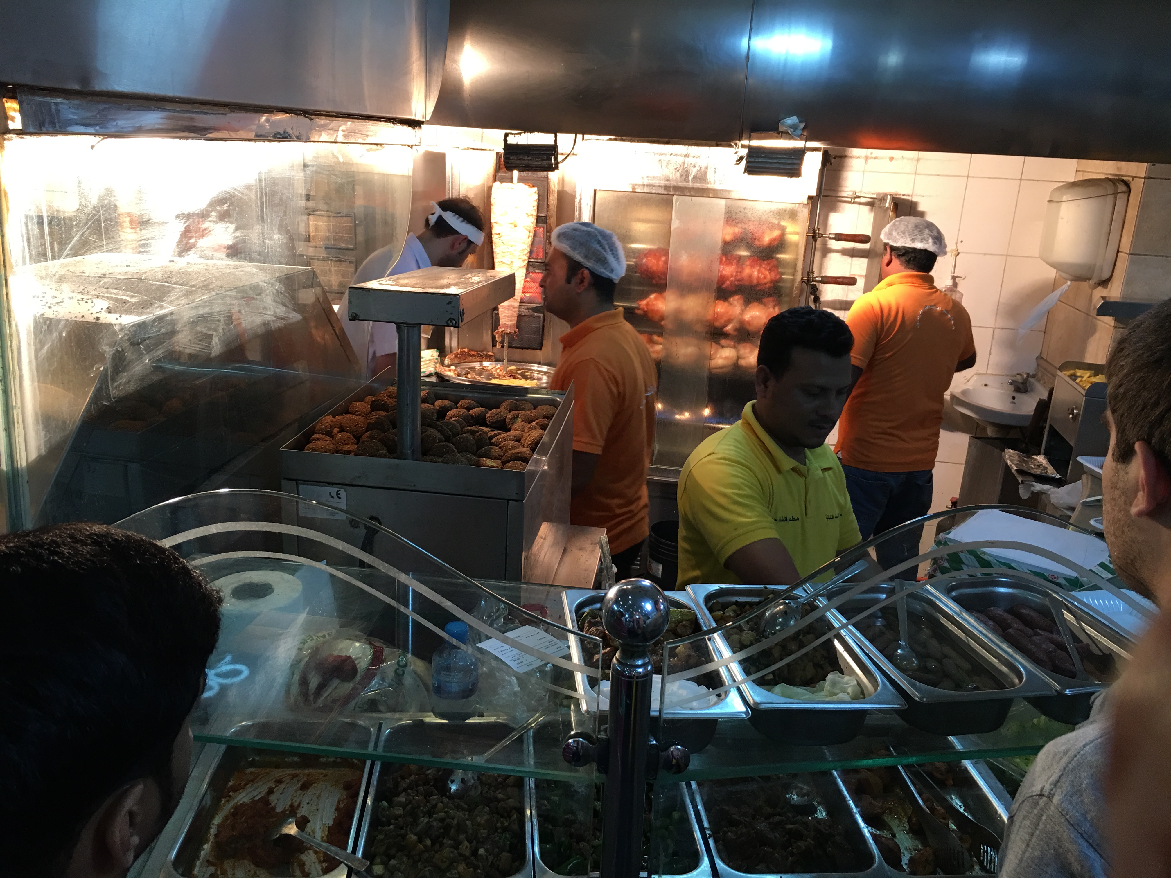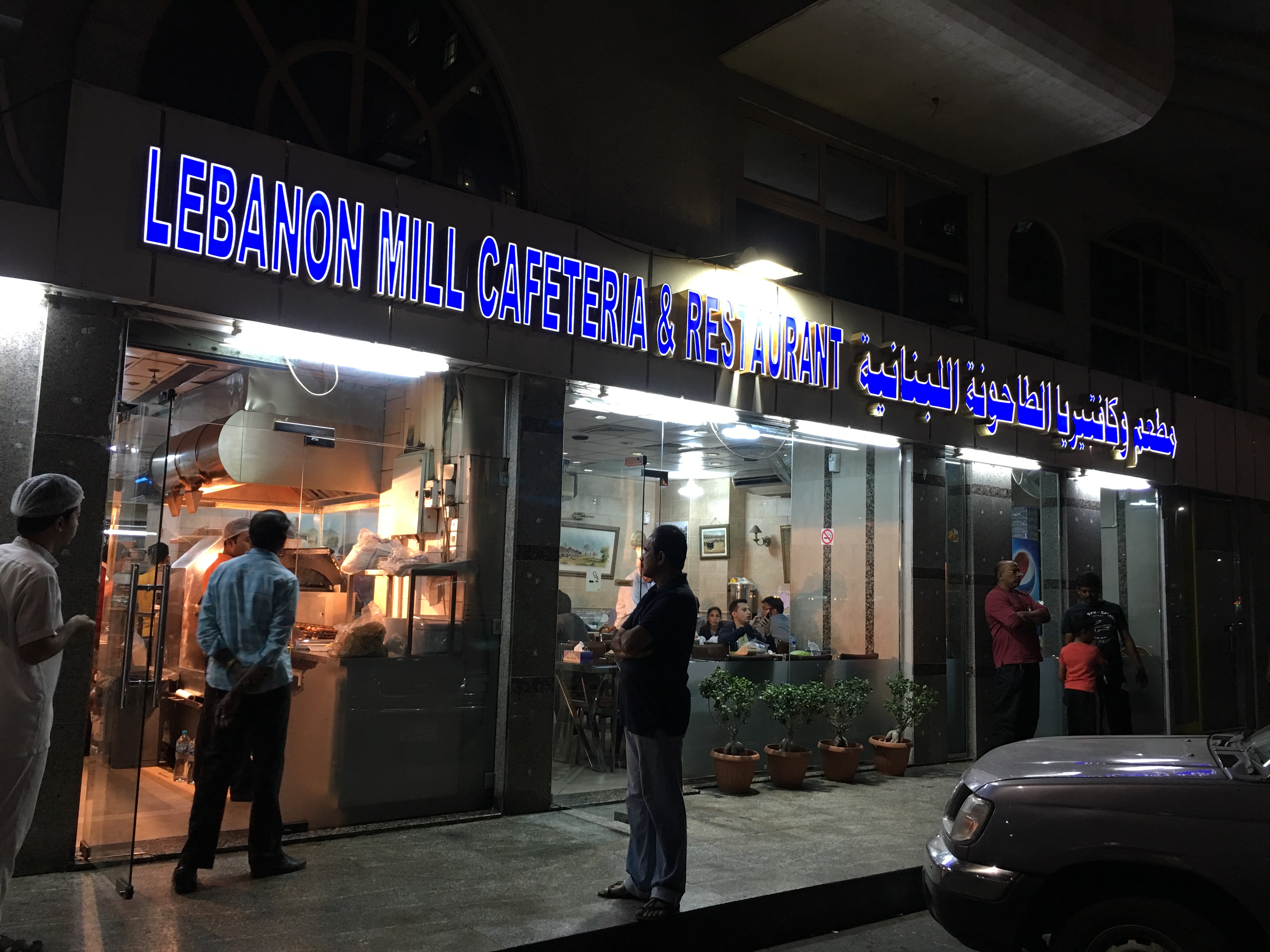阿联酋阿布扎比的LEBANON MILL CAFETERIA&RESTAURANT这家餐厅是我们当时参观完谢赫扎耶德清真寺后饥肠辘辘的时候找到的。因为当时拍完清真寺夜景其实就有点晚了,再加上夜黑风高我俩开车没看清楚路,压到了一个钢管做的浇水管,导致我们把车倒出来又费了点些时间外加好容易倒出来怕轮胎和底盘被金属管磨损还车时让我们赔又趴地上查了半天车(总之就是一段自驾黑历史)反正就是到餐厅的时候近晚上9点。以为餐厅会没什么客人,但去的时候人声鼎沸,里面坐满了食客,另外还有很多人外卖他家烤鸡打包带走。这景象仿佛到了伟大的簋街。餐厅经营的菜品就是黎巴嫩菜,烧烤还有
