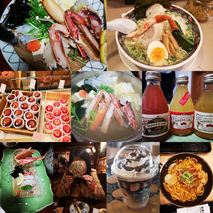 和脸一般大的活扇贝烤制好后吃一个就饱,爽歪歪;青森苹果🍎著名但是不如中国苹果甜。