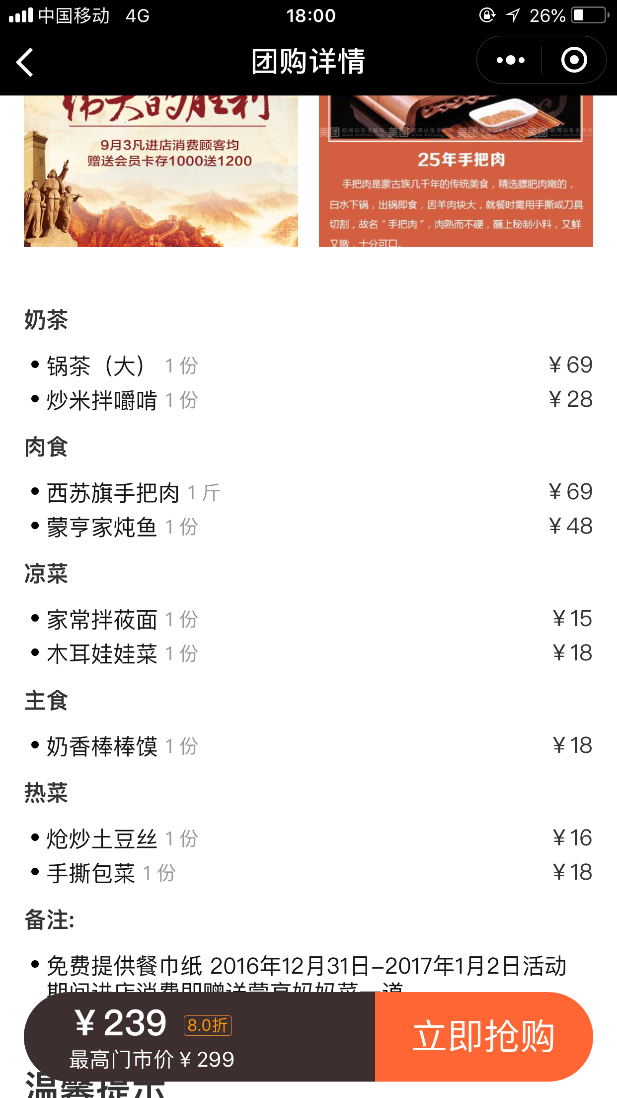 内蒙古乌兰察布的蒙亨阿木图赛因为想看乌兰察布的火山群,我们安排了这趟自驾。到了乌兰察布市后,晚餐时间,看这家店评价排名都靠前就去了。因为我们四个人,就买了大众点评上的套餐。所以菜品也就是固定的但是啊,上完菜,我们就惊呆了。虽然我之前自驾过阿尔山,是知道内蒙古那边菜量大的,但还是有些吃不完的无力感。果然,四个人甩开了腮帮子,吃到快吐了还是会剩。真的是……我为我是个北方人而感到惭愧。