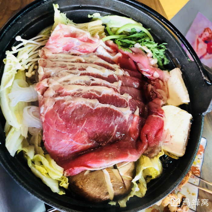热榜米其林寿喜锅里的牛肉选用日本国产的(日本人会把本国产的最好食物留用),每一片摆在一起好看的像件艺术品,入口咀嚼脂肪比例也很完美,一口一片,感动到哭~
