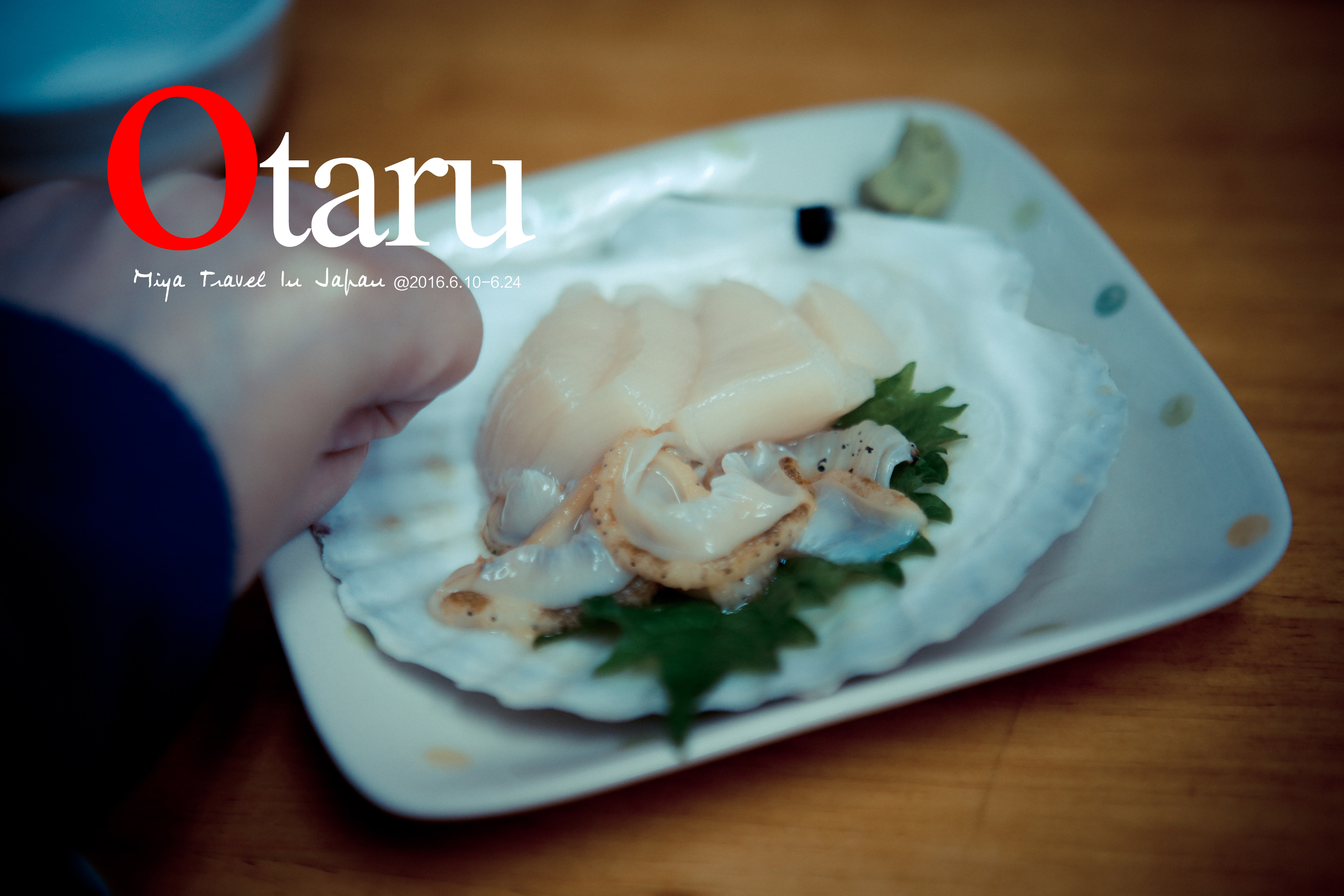 小樽的鱼市最小,东西真的很划算,这样大的扇贝不管是刺身,还是烤,都是300日元。之前大阪的黑门市场,我们每天去吃的烤扇贝是800日元的。