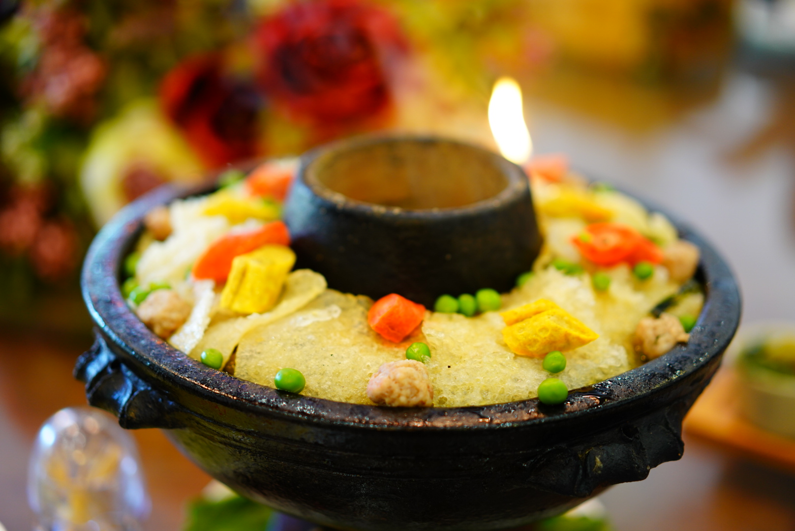 颜值更高的是四色虾饺,四个小锺,颜色各有不同,像极了春夏秋冬,里面的点心精致而小巧,皮吹弹可破,里面的馅料似乎随时满溢而出。