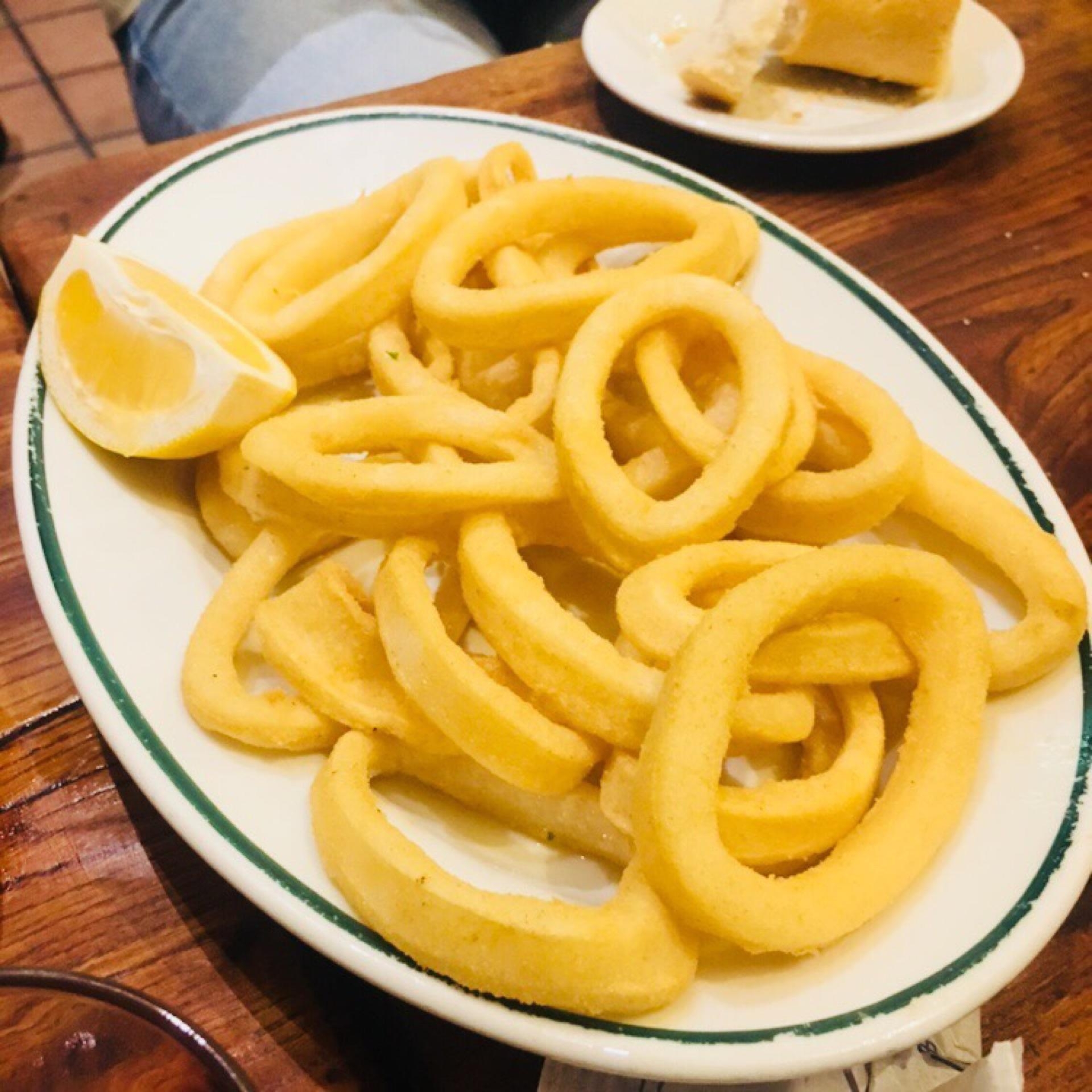 还有他家的鱿鱼圈!虽然摆盘和食材都简单,但真的是我在欧洲吃到的最好吃的鱿鱼圈了!特别新鲜~ 黄灿灿的拍着也好看!