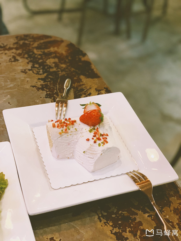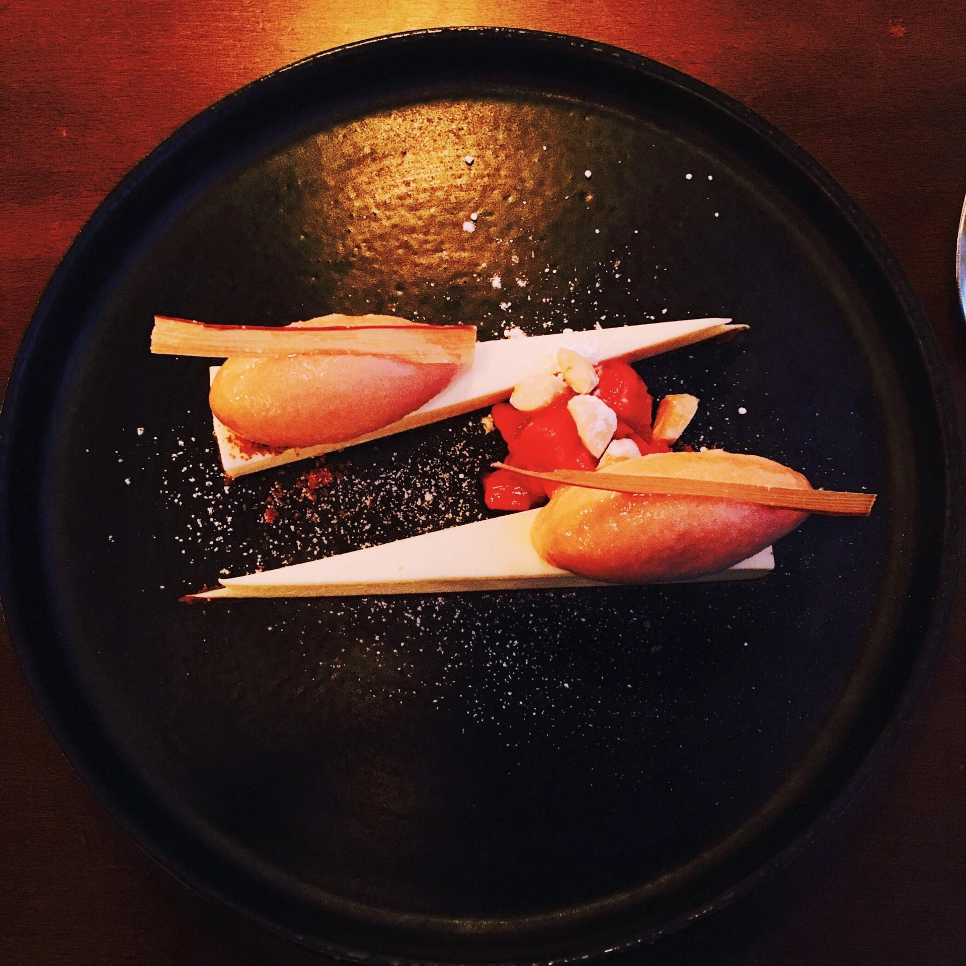甜点是大黄蛋糕↓ 大黄是我在欧洲才见过的食物(属于水果吧大概是),酸酸甜甜的放在甜点里很美味。
