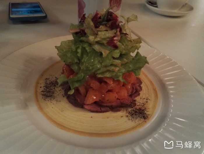 芥末三文鱼挞,超级推荐,但是前提是,你吃的惯芥末。一开始上桌的时候,我真心以为这是冰淇淋或者其他甜品。