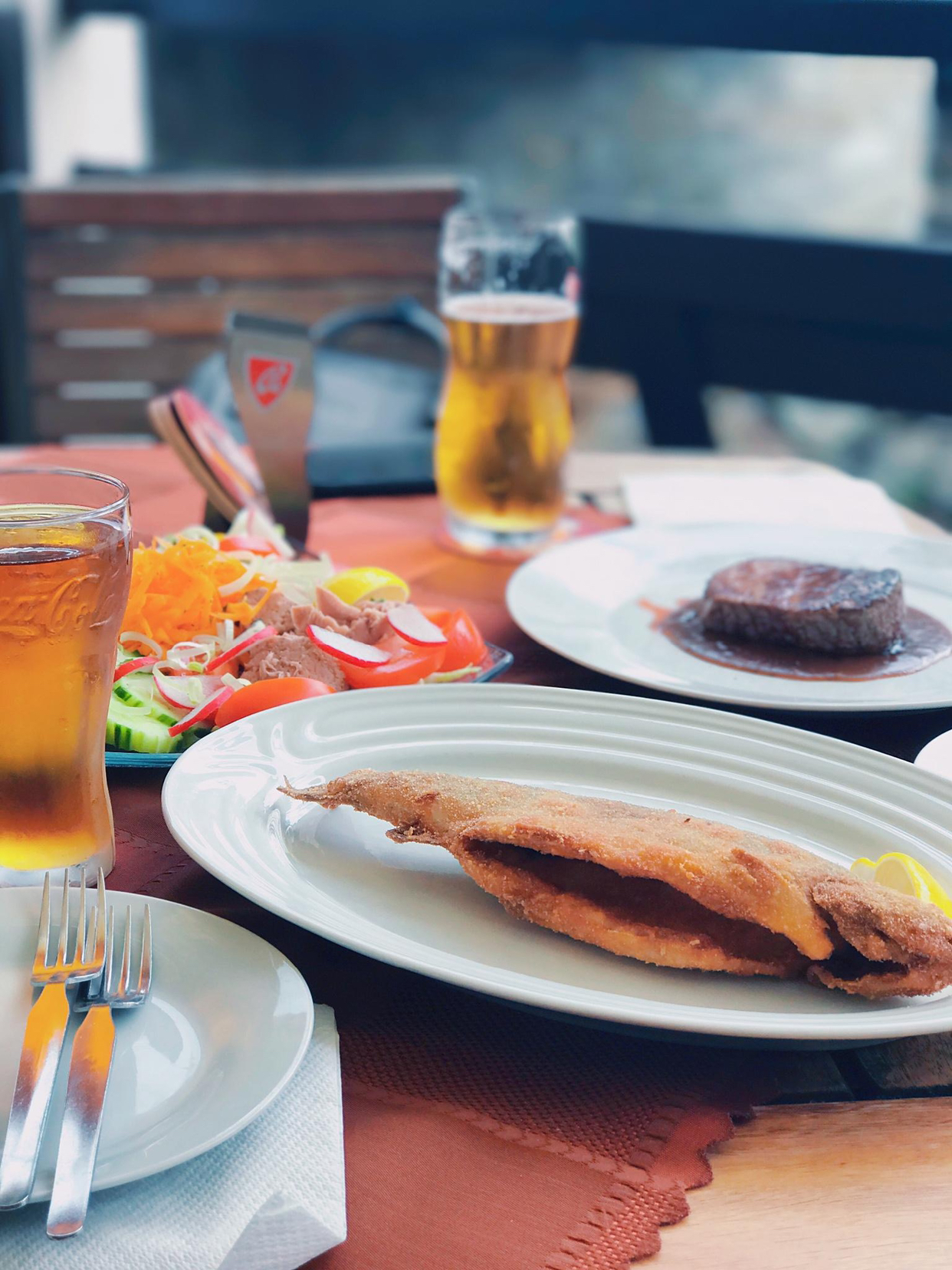 3.捷克ck小镇的parkan推荐理由:边看城堡边吃东西,烤鱼特别美味在"理发师桥"附近,大鱼大肉,有酒有菜。上图: