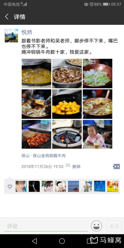 晓宇火锅是从 《舌尖上的中国》知道的,重庆本地人都不觉得好吃,因为味道还不够浓郁,但是迫于我这个外地人的强烈要求之后,当地的朋友就带我去吃,由于是工作日的中午,所以店里没什么人,但是进去我还觉得很闷热。点了鸳鸯锅,还有当地人最爱吃的几样比如:鹅肠,泥鳅,黄鳝等等,这么热,这样的一个环境我也是随便拍了一下,当时也没发朋友圈。因为我觉得不是我意料之中的味道。 到了晚餐,朋友带我去了这家 莽子火锅,他说这才是本地人爱吃的火锅。一看店门,其实我有倒胃口的感觉,里面又破又热。再看看门口,全是排队前来的美女帅哥,2个小时以后我吃上了,因为是老油,所以味道很浓郁,够麻够辣。更重要的是,边上好多打扮靓丽的重庆女孩,吃着火锅,完了就直接去酒吧,这才是最美的风景线呢。这么接地气的地方,我自然要点评下两家的好坏了,怎么可能不发呢?重庆 晓宇火锅(总店) 莽子火锅 摄于2013年8月四、情怀(具有特殊意义)