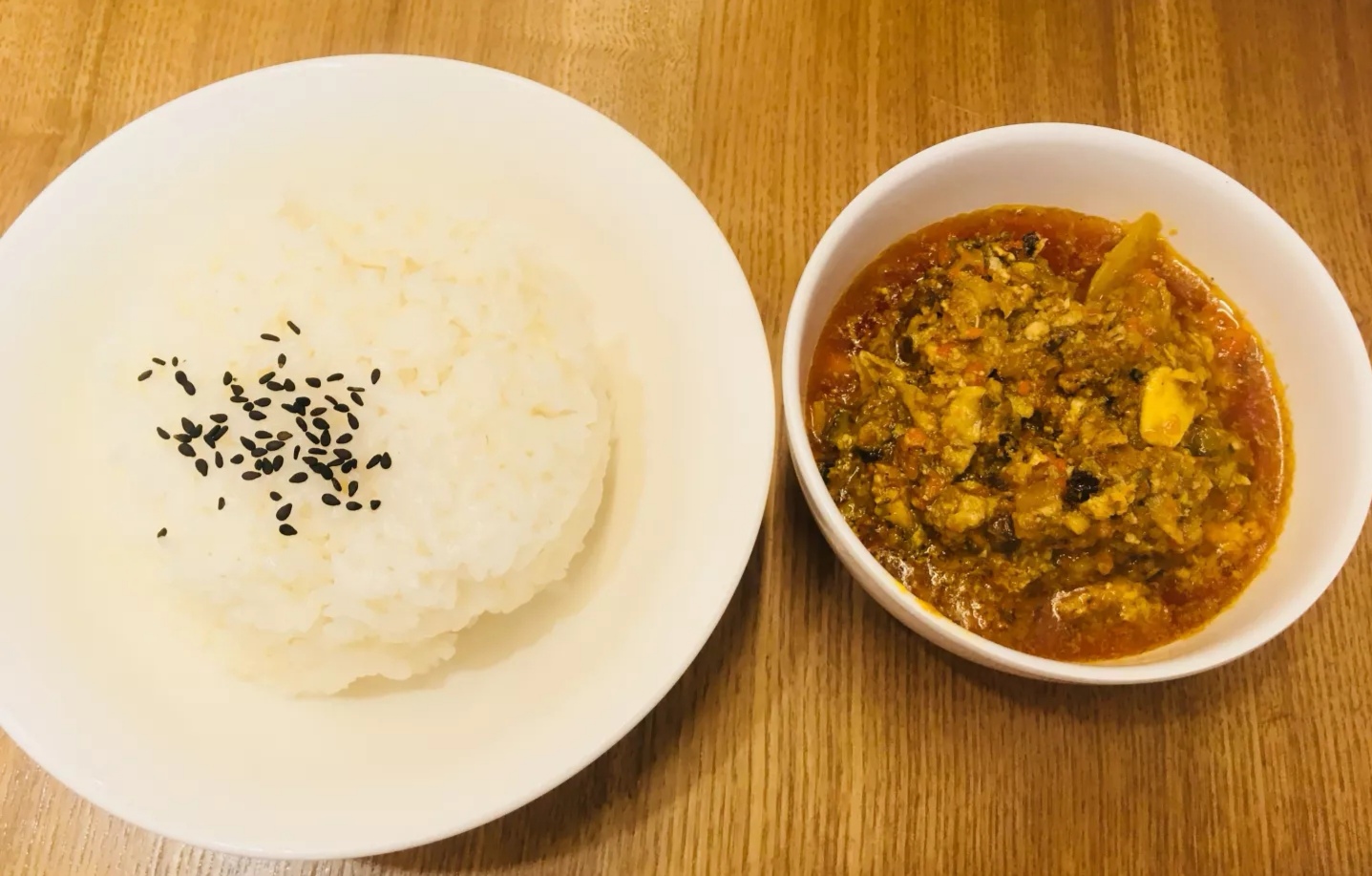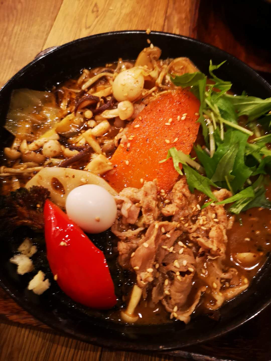 北海道汤咖喱没有印度咖喱的辛辣刺激反而多了牛乳般温暖柔和,连不太爱吃咖喱的我也被收服,里面各种食材搭配,荤素根茎蛋类豆制品,个别食材经过烤制入味,不得不说松茸很赞~