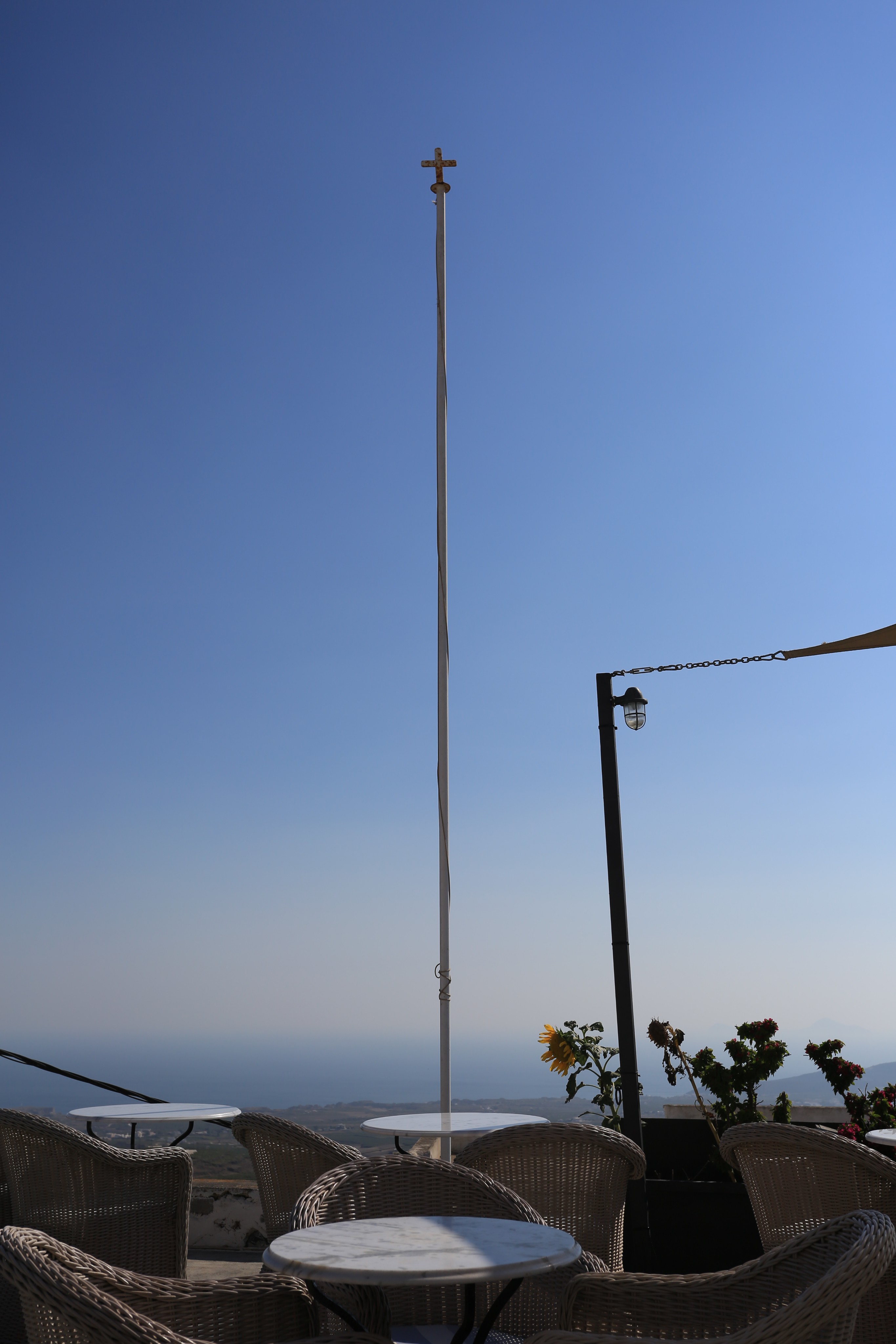 希腊篇:圣托里尼岛Pyrgos小镇忘记名字的山顶咖啡厅去希腊度蜜月的时候,是跟的那种小型高品质半自助团。跟团嘛,你懂的,酒店位置一定是不热门的地方。尽管我们这个团号称品质不错而且收费蛮高。在临离开圣岛前有半天的自由活动时间,我们也不打算泡酒店就说出去走走。在酒店需要步行十几分钟的地方有个小镇,镇子中间是个很高的山,于是我们步行过去又爬了山,山顶的位置有个咖啡馆,可以远眺整个岛的风景,位置极好。后来查了下这个山应该是圣岛的制高点,但时间太久有点遗忘。店员小哥颜值也很高,哈哈,这个也不是重点,不能说我研究了半天小哥的容貌,我可是蜜月中哦。