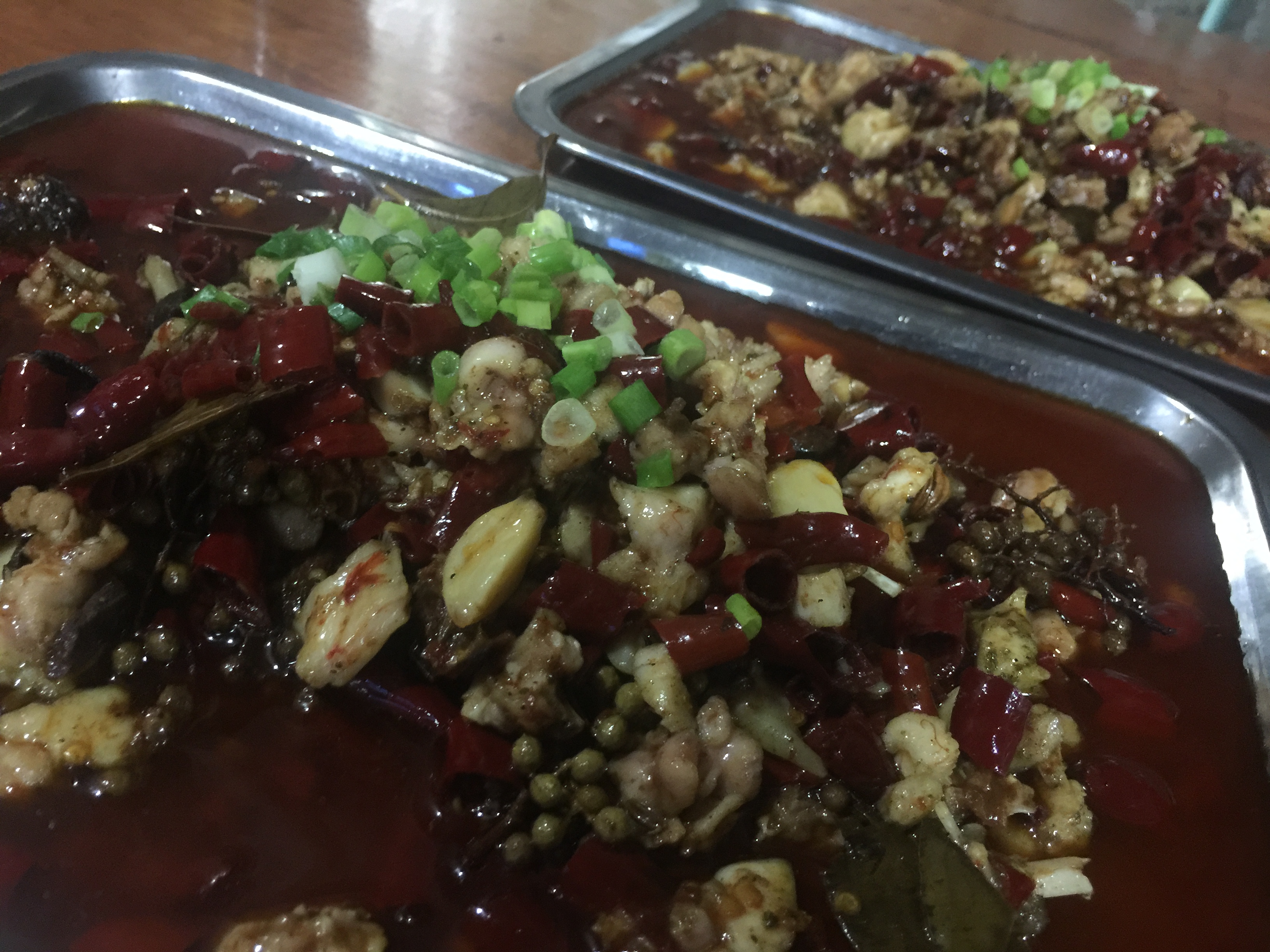 这里是他们的厨房,大晚上的看后面的烤鸡数量!国内篇四川自贡某餐厅这家真是要犹豫要不要发出来,去自贡玩耍,看完恐龙博物馆,就说找吃的。无意搜到大众点评这家,觉得评价还不错就去了。位置是真的不好找啊,感觉在一个废弃的厂子边上。而且掩盖在一片树木中。环境如你所见,破破烂烂。品质什么的就别指望了。但与之格格不入的是食客之多。而且每个人都吃的酣畅淋漓。按婆婆的意思,他们四川人是不太讲究环境的,如果菜品味道不好,掀桌不说,这家也根本开不长久。所以能在这么个破地方开餐厅还这么多人,一定是非常好吃的。秉着半信半疑的心态坐下来吃。那味道!!!简直了!!!!后来结账的时候老板问我们是怎么找到的,简单说了下老板明白了,说开在这么个不好找的地方的意思根本就不打算做不是熟客拉来的生客的生意,因为根本忙不过来。总之是个奇妙的体验~~对了,还要说下,自贡属于盐帮菜,味道下的蛮重的,不能吃辣的要斟酌哦。而且开始想要点不辣的菜老板还不太愿意炒,强调哦我们有人现在生病吃药需要忌口才给炒了俩不辣的素菜。