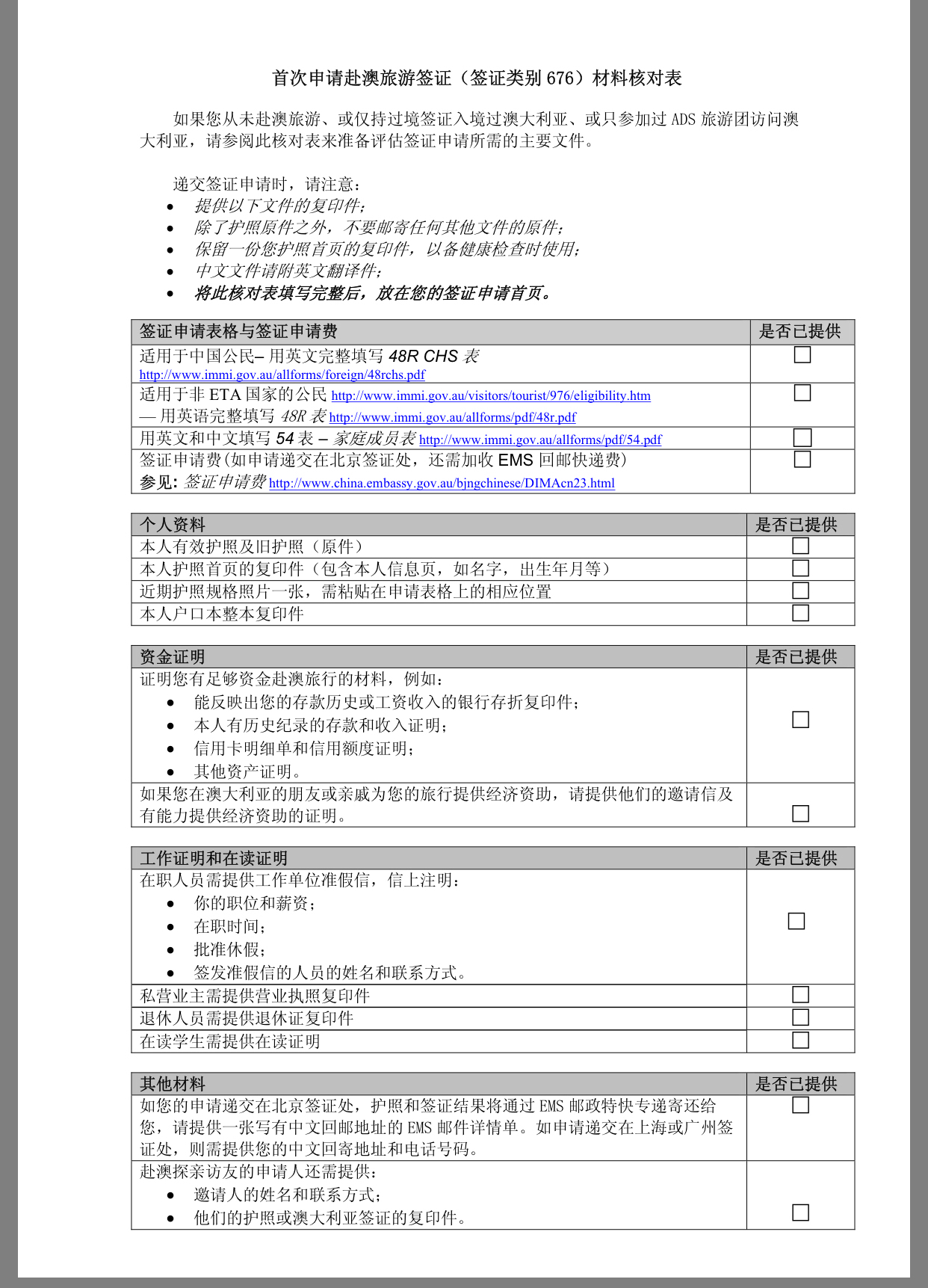 澳大利亚旅游签证材料清单:首次申请旅游类的访客签证,需要准备的资料如下,只要电子版本就行:1、本人有效护照2、本人有效身份证3、近期护照规格照片4、本人户口本整本5、资金证明:能反映出存款历史或工资收入的银行存折复印件,有历史记录的个人存款和收入证明,信用卡明细单和信用额度证明或其他资产证明。...显示全部