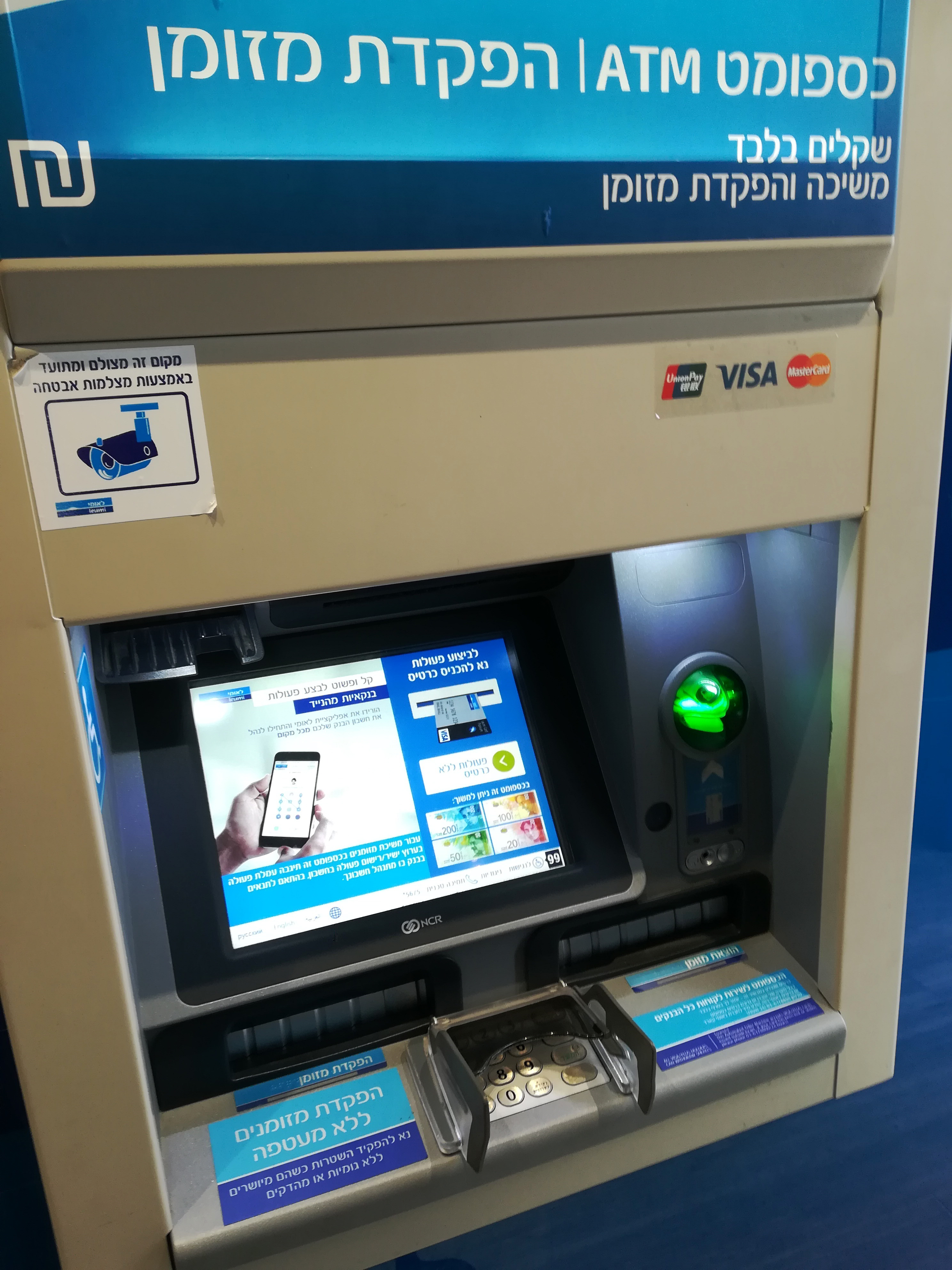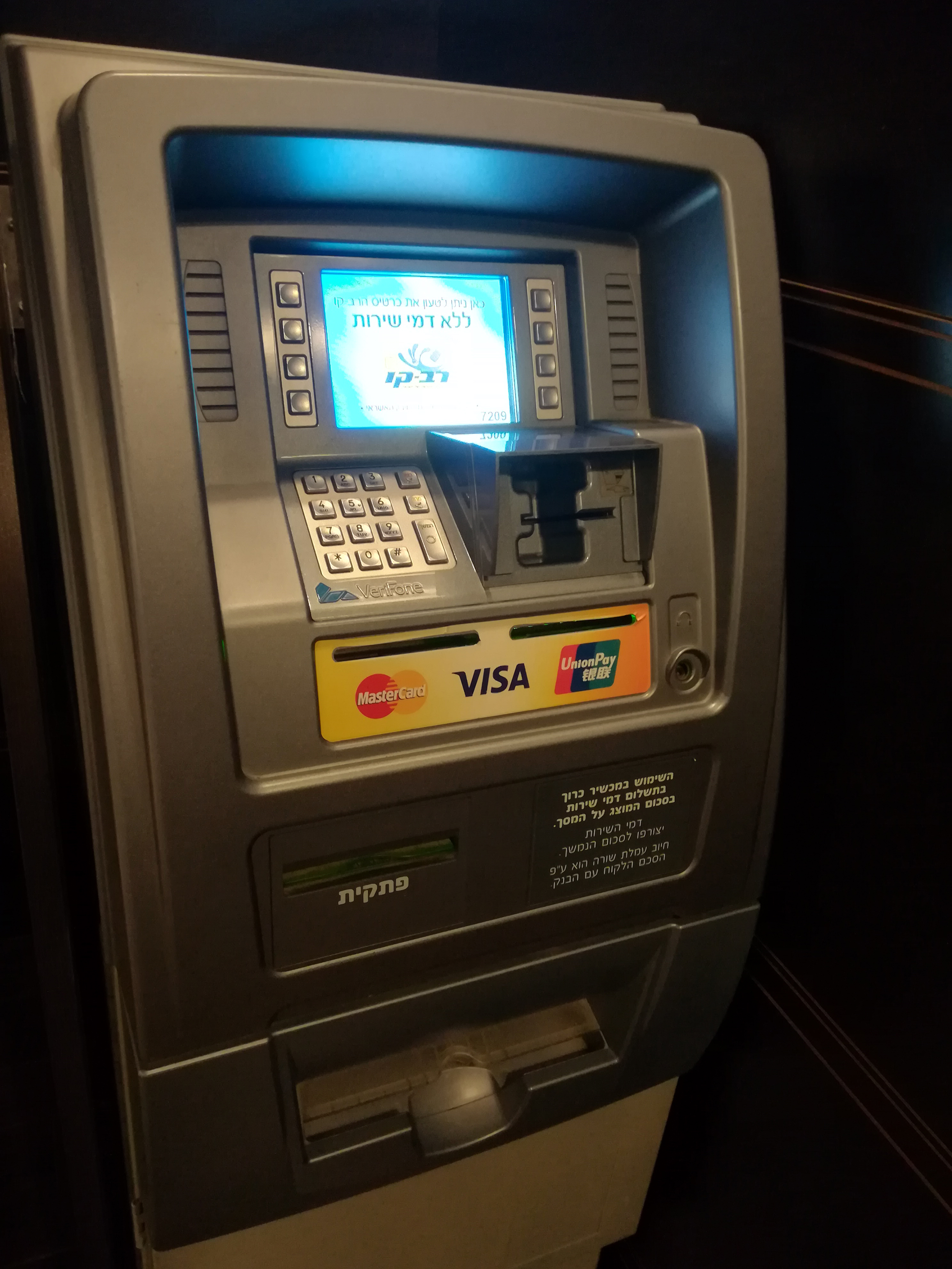 我住在耶路撒冷,用中国浦发银行和锦州银行的银联储蓄卡都取过谢克尔。原来取得多,现在不取了,原来1谢克尔兑换1.86元人民币,现在1谢克尔兑换2.02元人民币,这是我不用的原因。要选择用第一种取款机,这是以色列国民银行leumi银行的自助取款机,注意要看是否有银联标志,取款机都设在银行的门口或大...显示全部