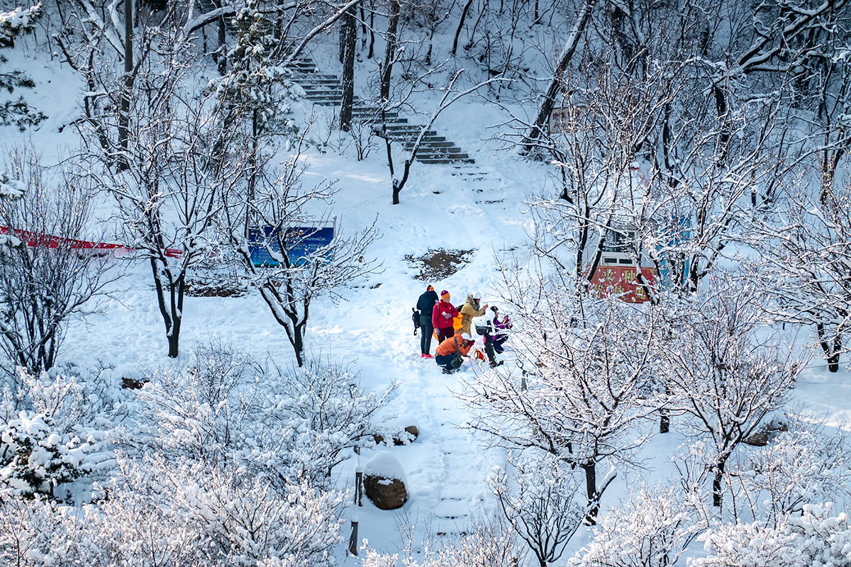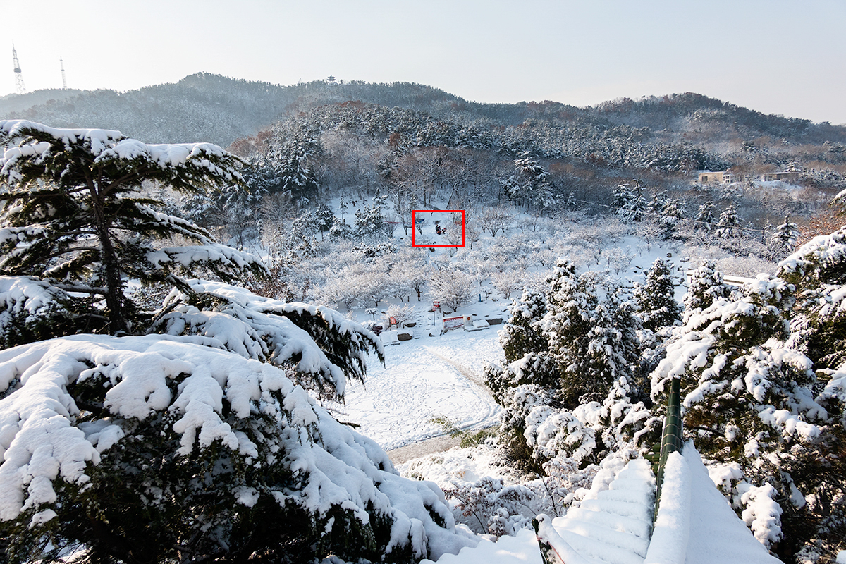 这是前几天下雪时拍的。同一个机位,24端拍摄。