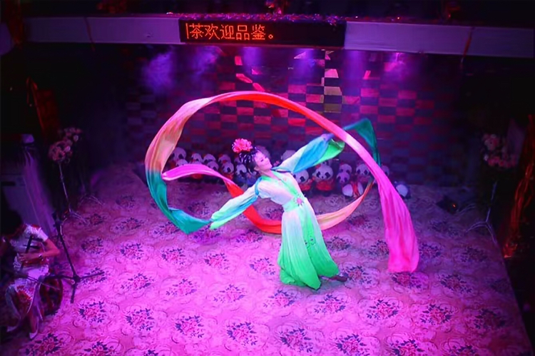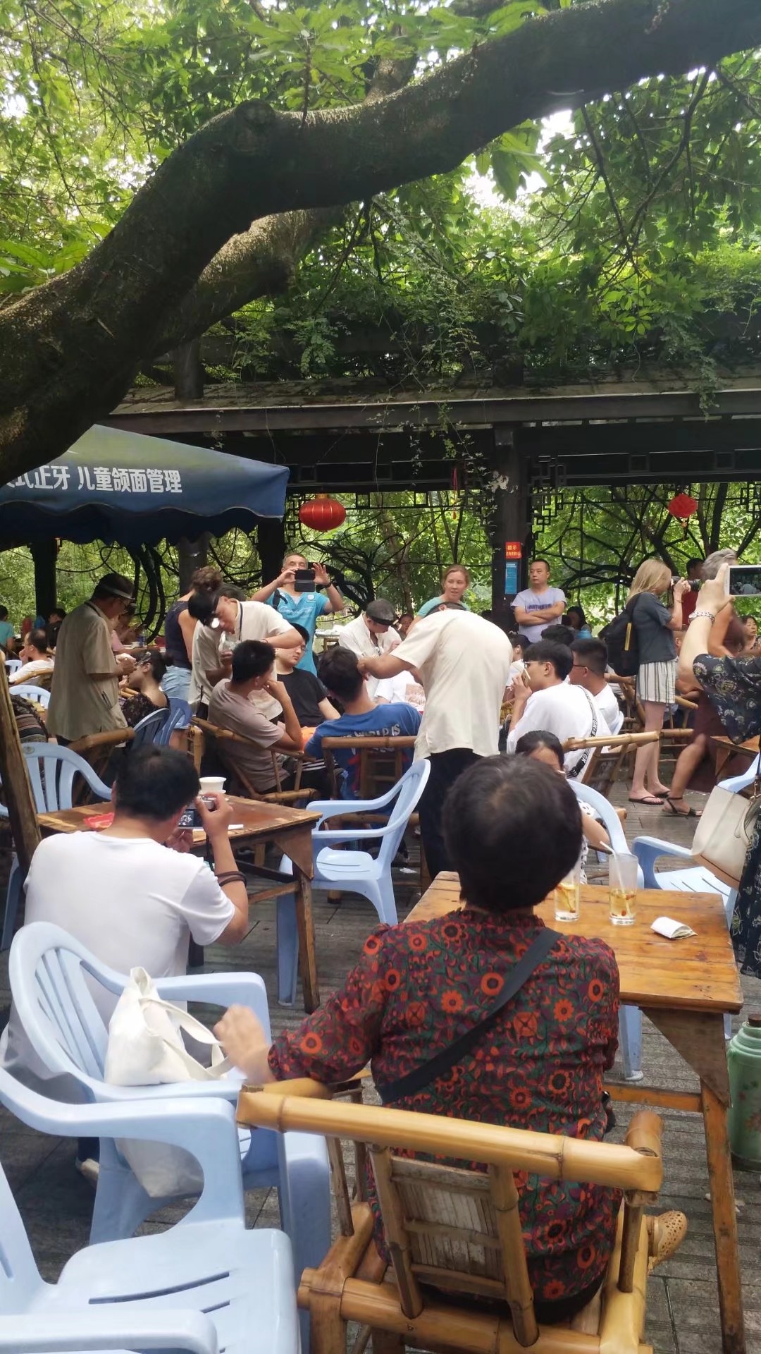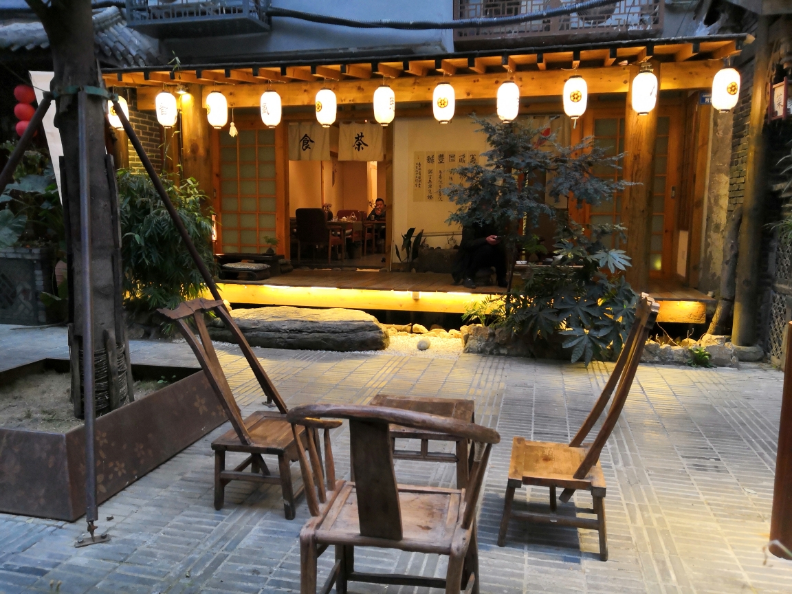 在夏日的夜晚,坐在这半露天的茶桌,旁边是川流的人群,手捧半盏茶,自己也成了街中的一景。