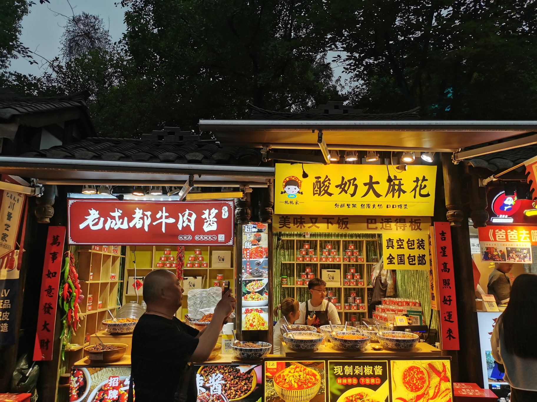 如果是白天去的话,宽窄的市井喧嚣、铜人逗笑、听曲掏耳…我想是能满足你的。