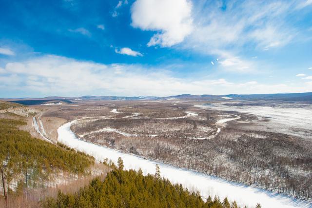 山河屯铁锅炖冬天的松花江被冰封起来,江面上有很多娱乐设施,拖拉机拉着度过江面,还有拉雪橇,也可以步行横跨松花江。