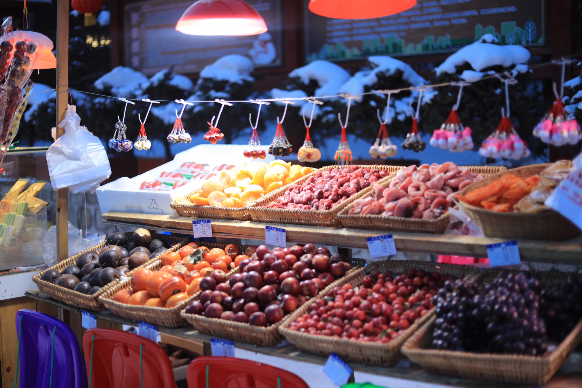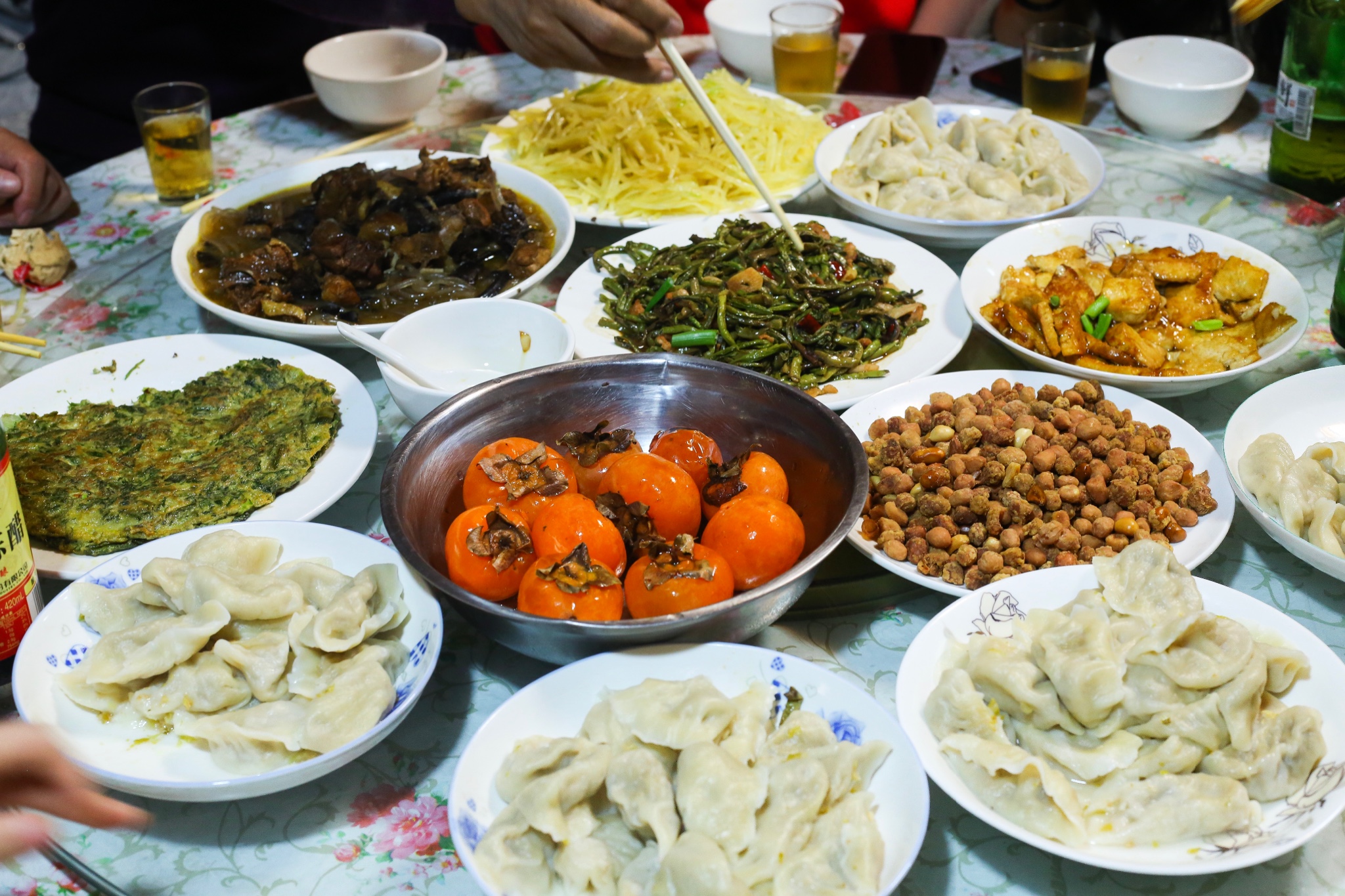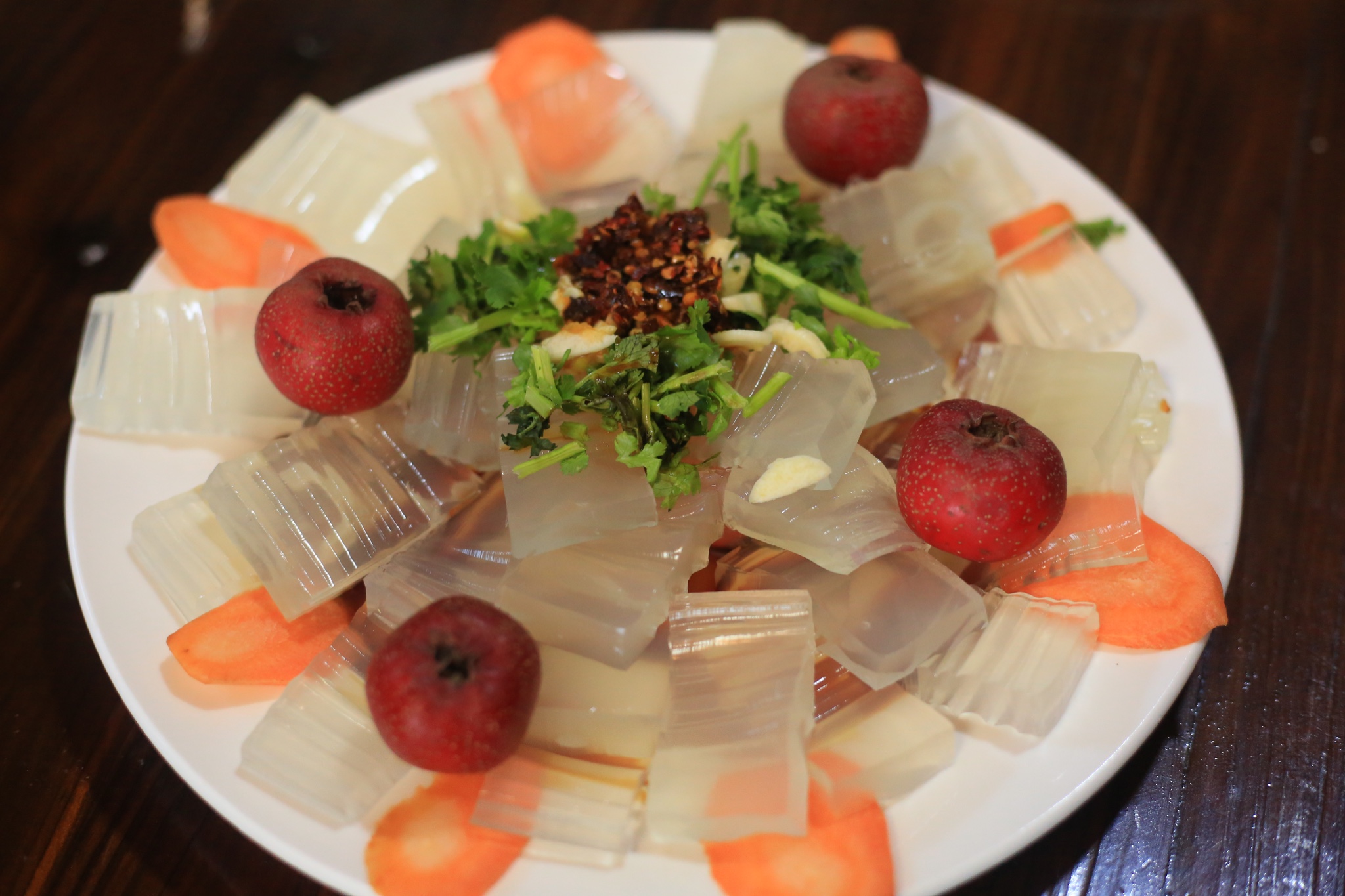 雪谷桌上中间的是冻柿子,来北方必须体验的天然冰箱,解冻后冰爽可口